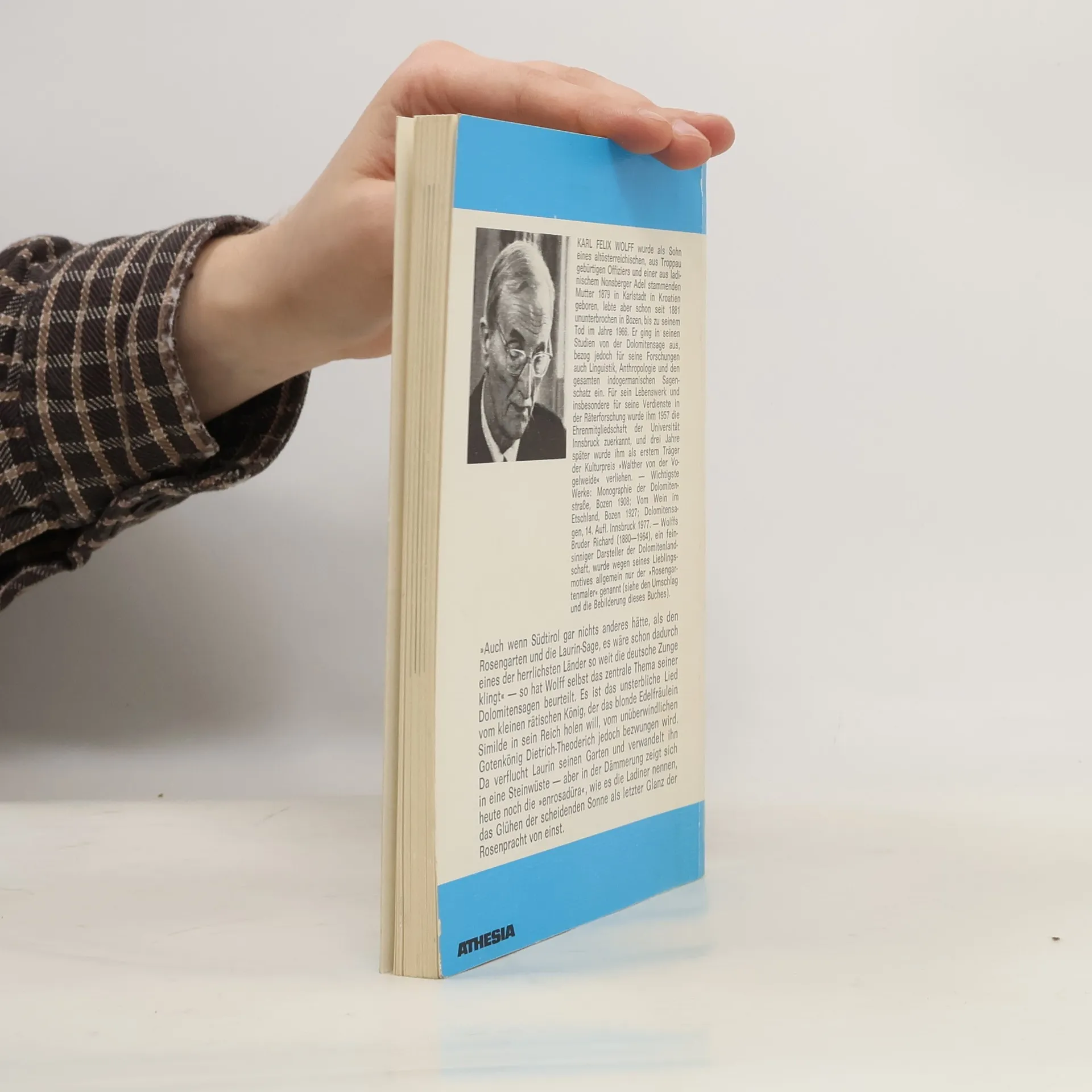 'Auch wenn Südtirol gar nichts anderes hätte als den Rosengarten und die Laurin-Sage, es wäre schon dadurch eines der herrlichsten Länder, so weit die deutsche Zunge klingt' – so hat Wolff selbst das zentrale Thema seiner Dolomitensagen beurteilt. Es ist das unsterbliche Lied vom kleinen rätischen König, der das blonde Edelfräulein Similde in sein Reich holen will, vom unüberwindlichen Gotenkönig Dietrich-Theoderich jedoch bezwungen wird. Da verflucht Laurin seinen Garten und verwandelt ihn in eine Steinwüste – aber in der Dämmerung zeigt sich heute noch die 'enrosadüra', wie es die Ladiner nennen, das Glühen der scheidenden Sonne als letzter Glanz der Rosenpracht von einst.