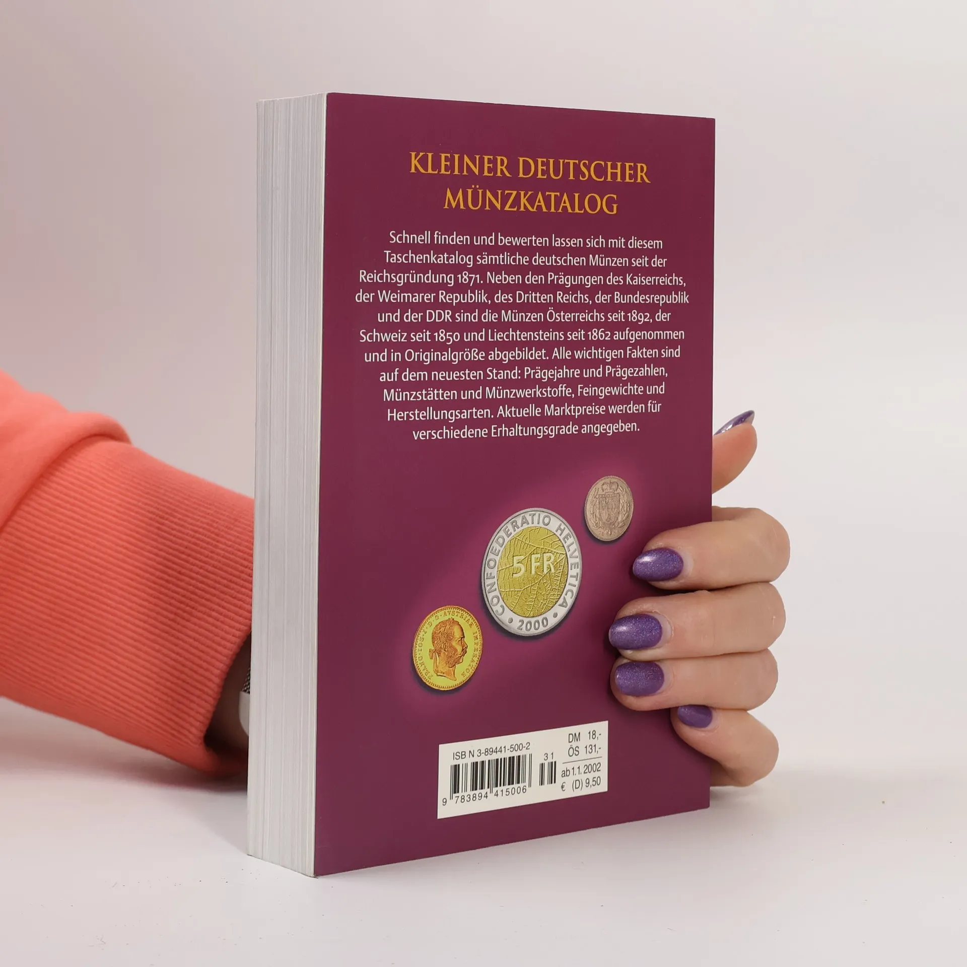 Der Kleine deutsche Münzkatalog ist seit Jahrzehnten die übersichtlichste und beliebteste Informationsquelle für den Sammler deutscher Münzen. Er umfasst die Münzen seit der Reichsgründung von 1871 bis heute: Kaiserreich, Weimarer Republik, Drittes Reich, DDR, Bundesrepublik, ehemalige Reichs- und Nebengebiete. Außerdem auch die Münzen aus Österreich seit 1892, Schweiz seit 1850 und Liechtenstein seit 1862. Der Sammler erhält einen kompletten Überblick der Umlaufmünzen, Gedenkmünzen, Kursmünzensätze, Numisblätter und Numisbriefe. Alle Informationen sind leicht verständlich und übersichtlich aufbereitet. Die bereits erschienenen und angekündigten Kursmünzen sind enthalten und über 3000 Münzen in Originalgröße mit Vorder- und Rückseite abgebildet. Die Berücksichtigung der neuesten Preisentwicklung, Preise für bis zu vier Erhaltungsgraden (schön, sehr schön, vorzüglich und prägefrisch), die Herstellungsarten Stempelglanz und Spiegelglanz (Polierte Platte) und die tatsächlichen Prägezahlen runden den Titel ab. über 3000 Münzen in Originalgröße mit Vorder- und Rückseite abgebildet