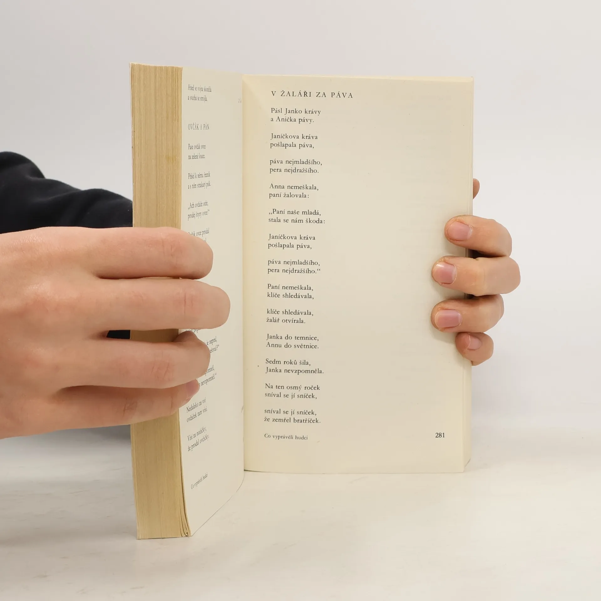 Výbor z nepřeberné pokladnice české a slovenské veršované lidové slovesnosti. V jedenácti tématických celcích seznámí (nejen) mladé čtenáře s ukolébávkami, říkadly, rozpočítadly, hádankami, dětskými hrami, s milostnou lyrikou, s písněmi pracovními, tanečními, vojenskými a výpravnými i s ohlasem lidové poezie v tvorbě našich básníků. To vše doplněno o: Seznam doporučené četby -- Seznam sběratelů lid. písní a autorů umělé poezie -- Slovníček nářečních a slov. výrazů a slovníček termínů z poetiky a hud. terminologie.