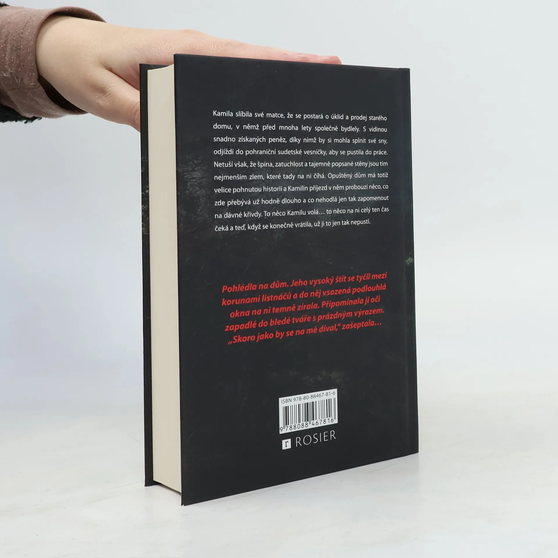 Psychologický thriller inspirovaný skutečnými událostmi. Kamila slíbila své matce, že se postará o úklid a prodej starého domu, v němž před mnoha lety společně bydlely. S vidinou snadno získaných peněz, díky nimž by si mohla splnit své sny, odjíždí do pohraniční sudetské vesničky, aby se pustila do práce. Netuší však, že špína, zatuchlost a tajemně popsané stěny jsou tím nejmenším zlem, které tady na ni číhá. Opuštěný dům má totiž velice pohnutou historii a Kamilin příjezd v něm probouzí něco, co zde přebývá už hodně dlouho a co nehodlá jen tak zapomenout na dávné křivdy. To něco Kamilu volá to něco na ni celý ten čas čeká a teď, když se konečně vrátila, už ji to jen tak nepustí.