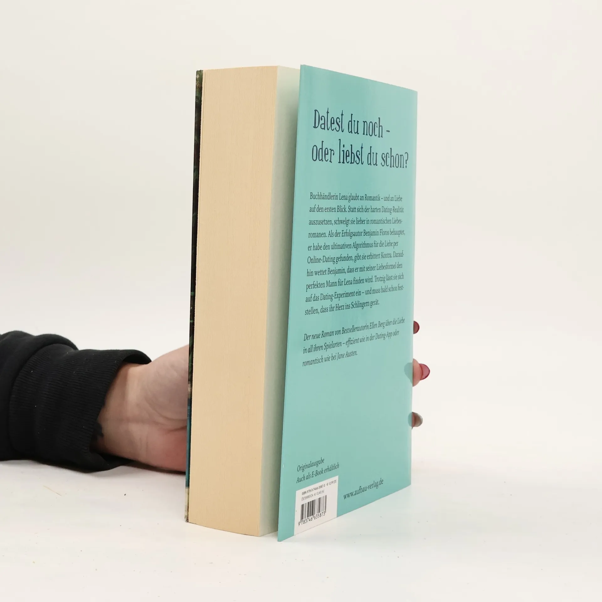 Datest du noch – oder liebst du schon?- Buchhändlerin Lena glaubt an Romantik – und an Liebe auf den ersten Blick. Statt sich der harten Dating-Realität auszusetzen, schwelgt sie lieber in romantischen Liebesromanen. Als der Erfolgsautor Benjamin Floros behauptet, er habe den ultimativen Algorithmus für die Liebe per Online-Dating gefunden, gibt sie erbittert Kontra. Daraufhin wettet Benjamin, dass er mit seiner Liebesformel den perfekten Mann für Lena finden wird. Trotzig lässt sie sich auf das Dating-Experiment ein – und muss bald schon feststellen, dass ihr Herz ins Schlingern gerät. Der neue Roman von Bestsellerautorin Ellen Berg über die Liebe in all ihren Spielarten – effizient wie in der Dating-App oder romantisch wie bei Jane Austen.