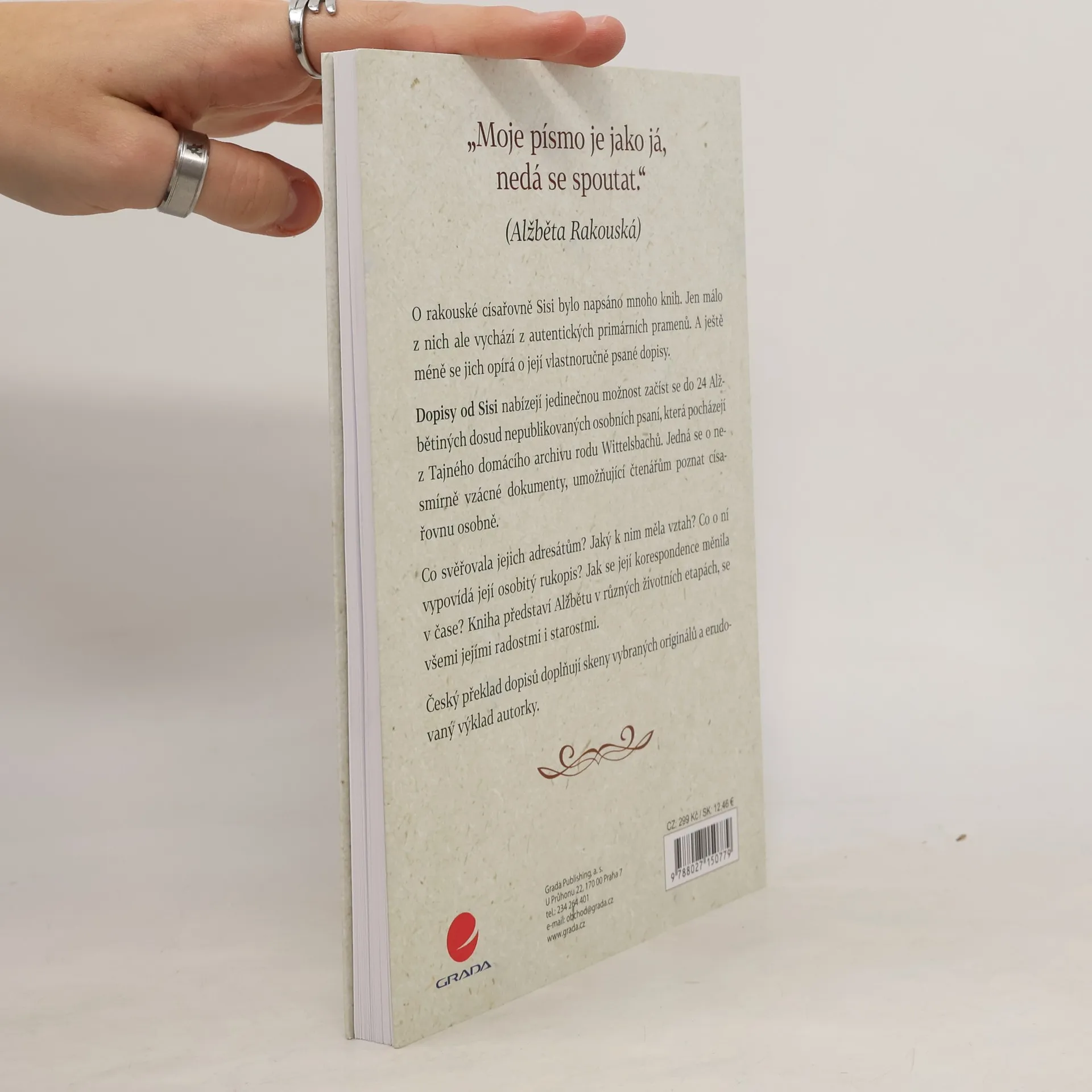 O rakouské císařovně Sisi bylo napsáno mnoho knih. Jen málo z nich ale vychází z autentických primárních pramenů. A ještě méně se jich opírá o její vlastnoručně psané dopisy. Dopisy od Sisi nabízejí jedinečnou možnost začíst se do 24 Alžbětiných dosud nepublikovaných osobních psaní, která pocházejí z Tajného domácího archivu rodu Wittelsbachů. Jedná se o nesmírně vzácné dokumenty, umožňující čtenářům poznat císařovnu osobně. Co svěřovala jejich adresátům? Jaký k nim měla vztah? Co o ní vypovídá její osobitý rukopis? Jak se její korespondence měnila v čase? Kniha představí Alžbětu v různých životních etapách, se všemi jejími radostmi i starostmi. Český překlad dopisů doplňují skeny vybraných originálů a erudovaný výklad autorky.