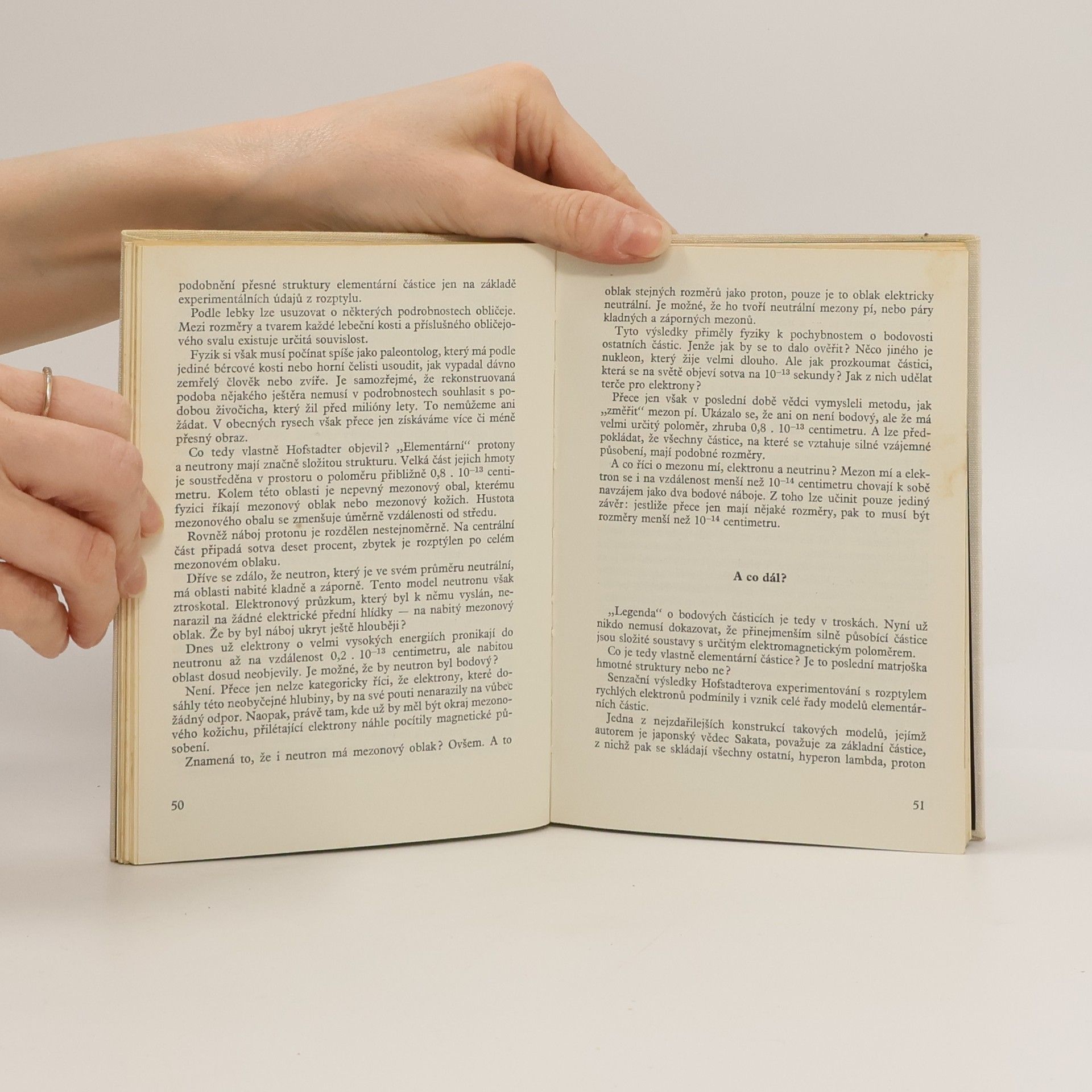 Populárně vědecká knížka zachycuje vývoj a výsledky fyziky elementárních částic přibližně do r. 1972. Dává nahlédnout do neviditelného světa základních stavebních kamenů hmoty, do tajemství „řemesla“ současných experimentálních fyziků, seznamuje se vznikem a principy moderních fyzikálních teorií a hypotéz a upozorňuje na některé dosud nevyřešené problémy fyziky elementárních částic.