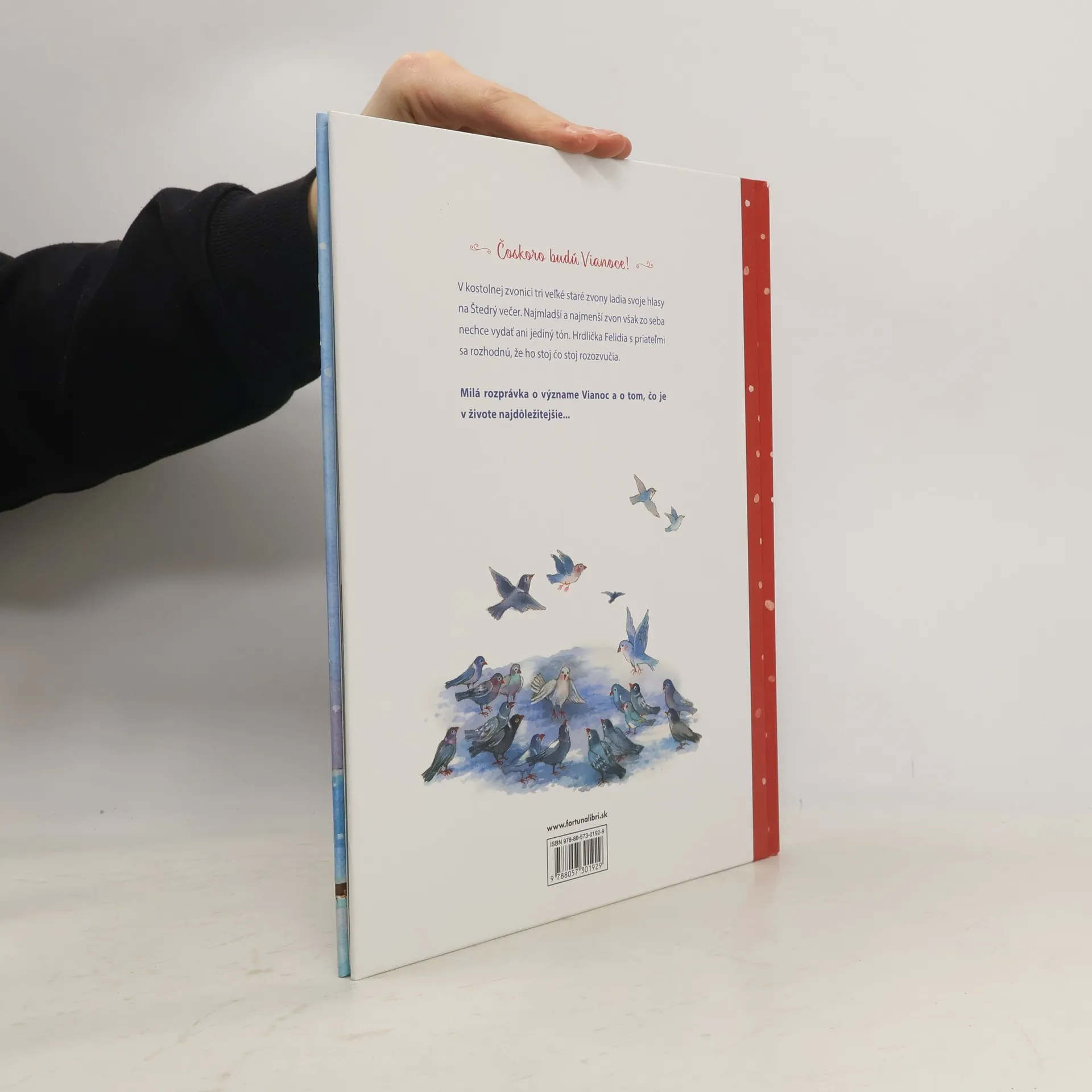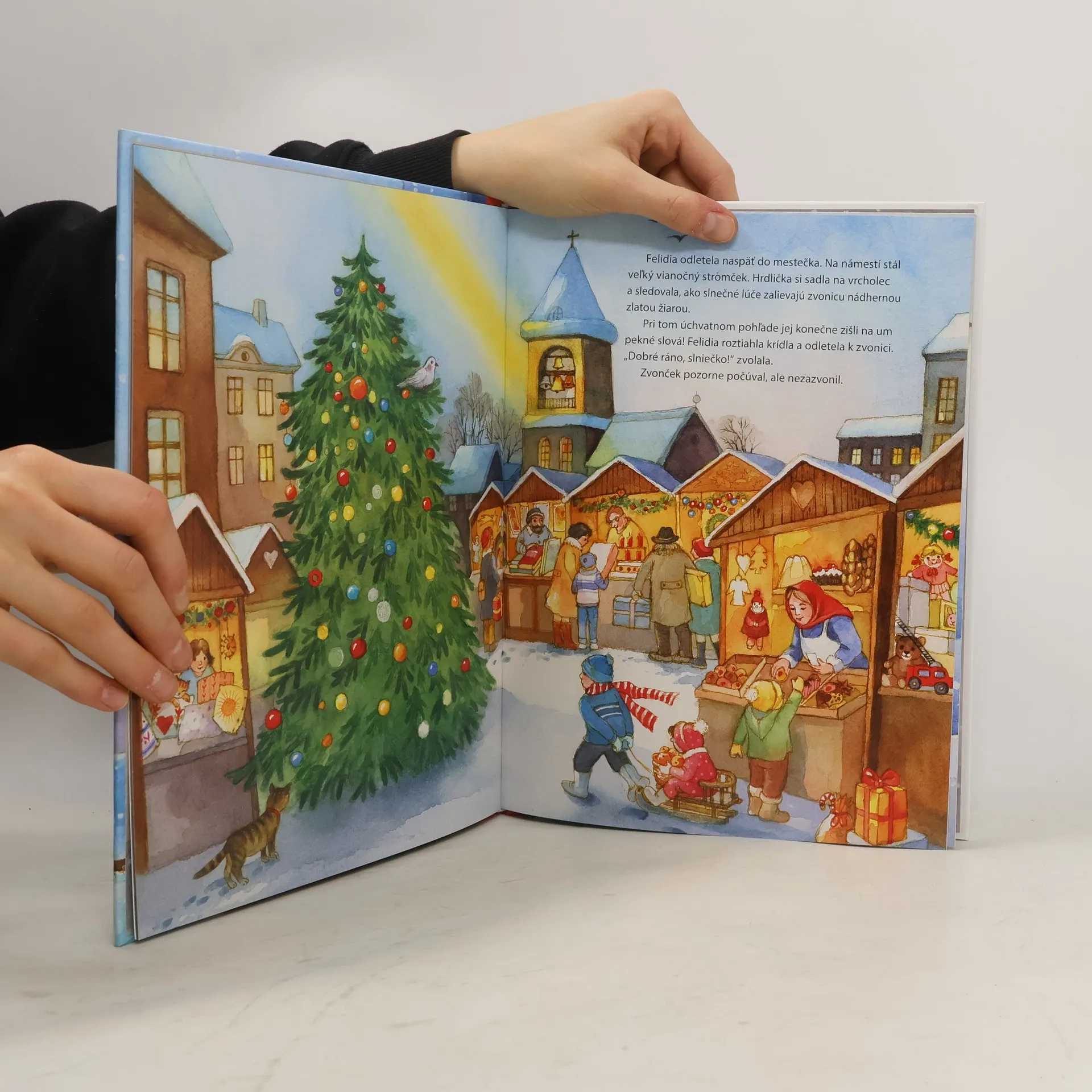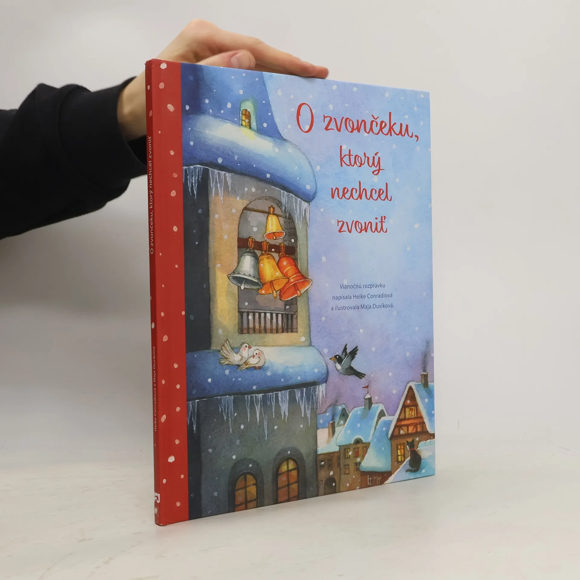 Milý príbeh o význame Vianoc s krásnymi ilustráciami. V mestečku na námestí stál veľký kostol a v jeho zvonici bývali štyri zvony. Tri veľké boli veľmi, veľmi staré. Iba ten najmenší bol nový, no jediný nezvonil. Čo sa mohlo stať? Hrdlička, múdra sova a aj iné zvieratká sa pokúšali nájsť správne slová, aby zvonček povzbudili a začal zvoniť. Dlho nič nezaberalo. Nakoniec tie správne slová našli...