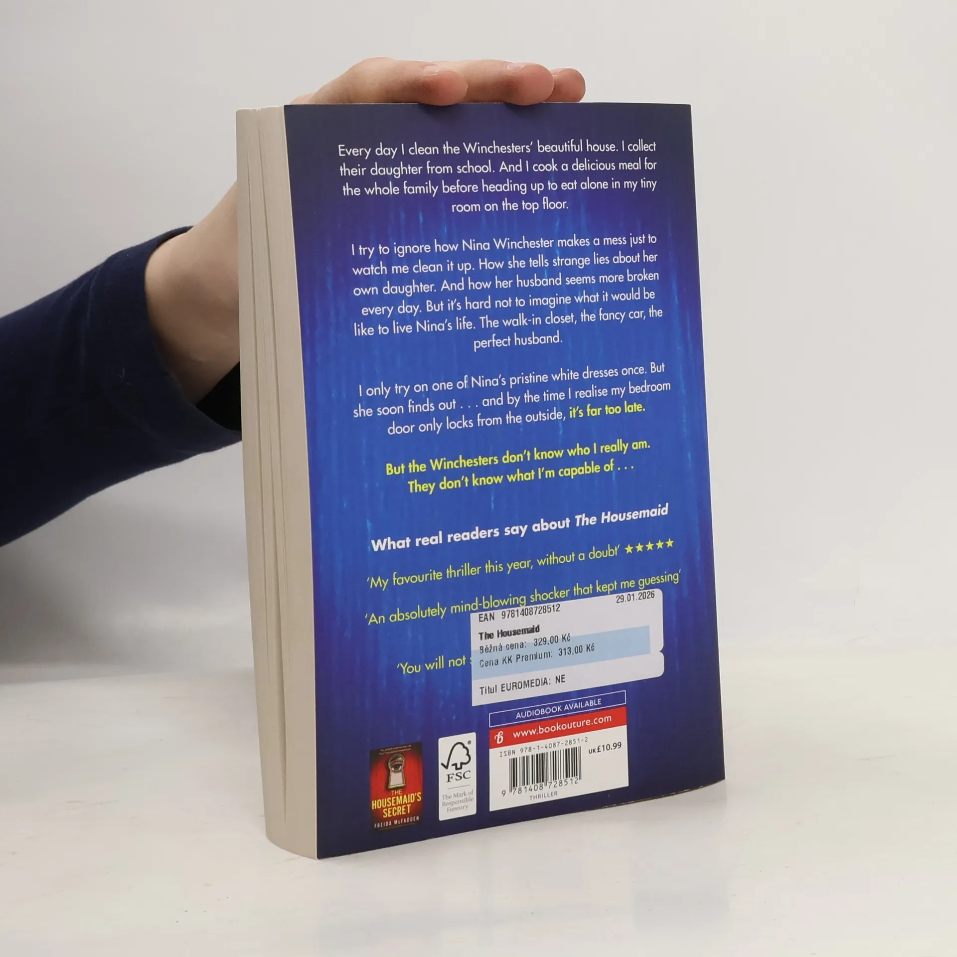 "Welcome to the family," Nina Winchester says as I shake her elegant, manicured hand. I smile politely, gazing around the marble hallway. Working here is my last chance to start fresh. I can pretend to be whoever I like. But I'll soon learn that the Winchesters' secrets are far more dangerous than my own . . .Every day I clean the Winchesters' beautiful house top to bottom. I collect their daughter from school. And I cook a delicious meal for the whole family before heading up to eat alone in my tiny room on the top floor. I try to ignore how Nina makes a mess just to watch me clean it up. How she tells strange lies about her own daughter. And how her husband Andrew seems more broken every day. But as I look into Andrew's handsome brown eyes, so full of pain, it's hard not to imagine what it would be like to live Nina's life. The walk-in closet, the fancy car, the perfect husband. I only try on one of Nina's pristine white dresses once. Just to see what it's like. But she soon finds out... and by the time I realize my attic bedroom door only locks from the outside, it's far too late. But I reassure myself: the Winchesters don't know who I really am. They don't know what I'm capable of . . .