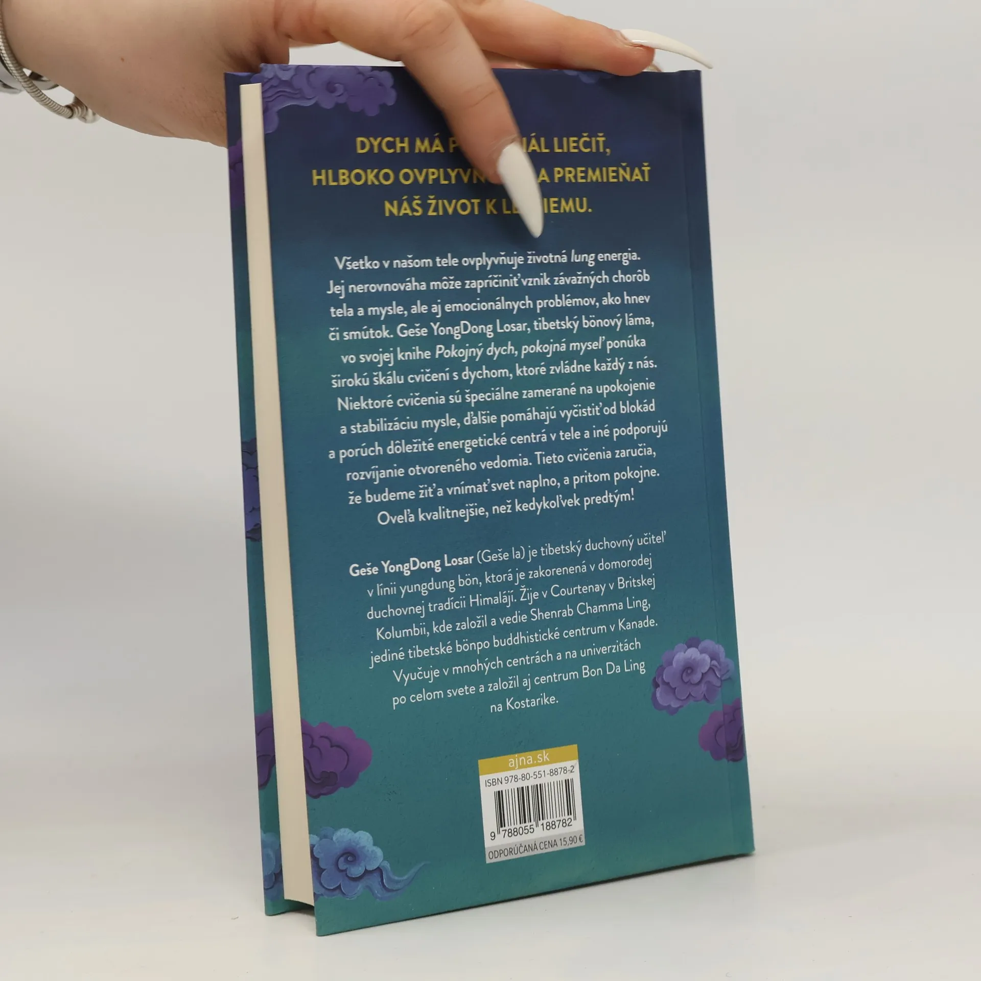 V priebehu tisícročí sa v mnohých východných tradíciách vyvinuli praktiky, ktoré využívajú silnú uzdravujúcu energiu dychu na liečbu fyzických, emocionálnych a duševných problémov. V čínštine sa táto energia nazýva čchi, v sanskrte prána a v tibetčine lung.Lung je životodarná energia, ktorá sa pohybuje naším telom. Nedostatok alebo nerovnováha tejto energie môže spôsobiť choroby tela a mysle alebo emocionálne problémy, ako zmätok, hnev a smútok. Geše YongDong Losar, učenec a mních starobylej tibetskej tradície bön, nám vo svojej knihe ponúka overené praktiky, ktoré nám pomôžu vyrovnať lung energiu. Vďaka bohatým vedomostiam, ktoré získal počas rokov štúdia a praxe, sú tieto praktiky jednoduché a vytvárajú ľahkú cestu k väčšiemu pokoju, sile a jasnosti mysle.