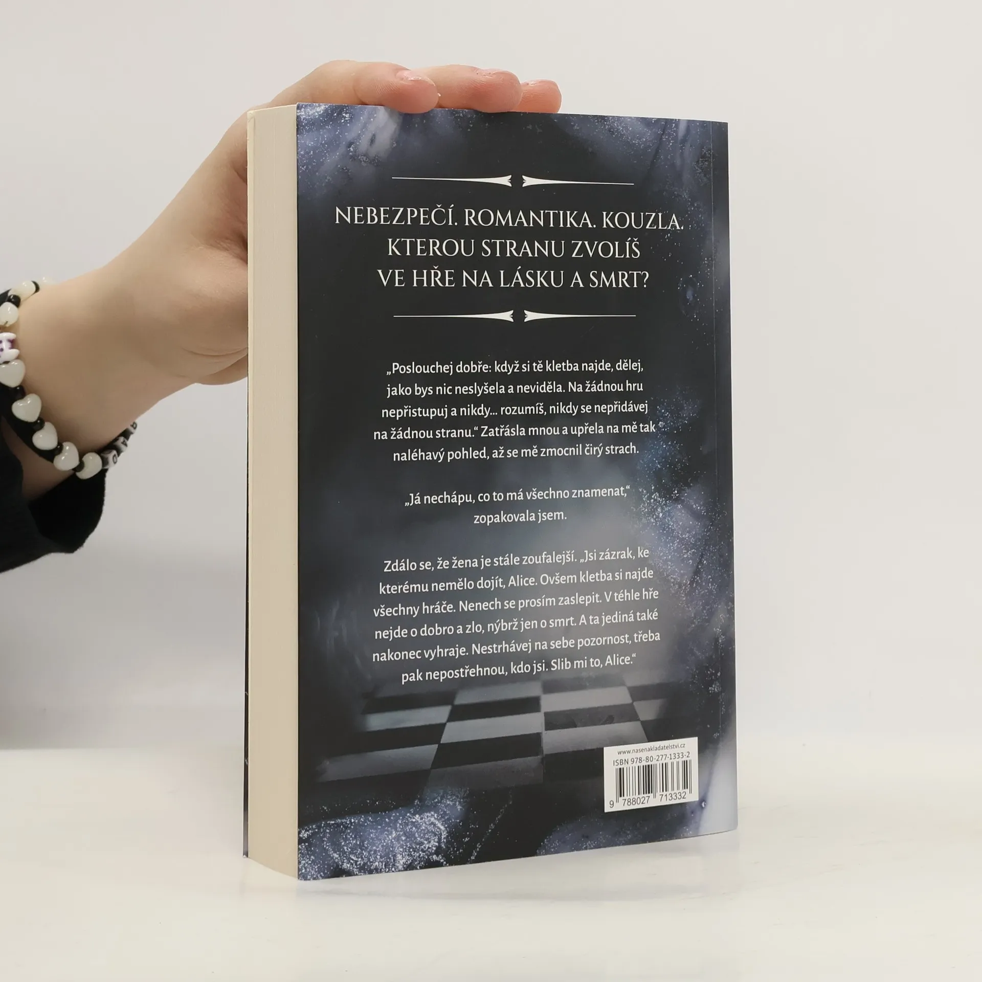 Už celá staletí sužuje šlechtické rody Chesterfieldů a St. Burringtonů nepřemožitelná kletba – a to až do dnešních dní, kdy se z obou sídel staly elitní internátní školy. Nic z toho netuší středoškolačka Alice, která po sérii záhadných událostí přijíždí do Chesterfieldu na letní kurz.Znamení na zápěstích spolužáků v ní nevzbudí podezření, o to víc ale její pozornost upoutá šarmantní, i když poněkud záhadný Vincent. Jeho úsměv ji okouzlí natolik, že na všechno kolem sebe zapomene – až jednoho dne v lese najde jednu ze svých spolužaček proměněnou v kámen a i na jejím zápěstí se objeví znamení šachové figurky…Černá, nebo bílá? Vybere si Alice stranu v téhle hře na lásku a smrt? Zjistí, kým ve skutečnosti je? A obstojí tváří v tvář kletbě?Noční partie: Hraj o svůj osud je romantický městský fantasy román od autorky bestselleru Polib mě a první díl duologie, v němž se střídají žhavé scény s napínavou akcí a pozvolna se rozkrývá prastará záhada. Připravte se na podmanivý mix vášně, dobrodružství a magie s lehkou příměsí humoru, který vás nenechá knihu jen tak odložit.