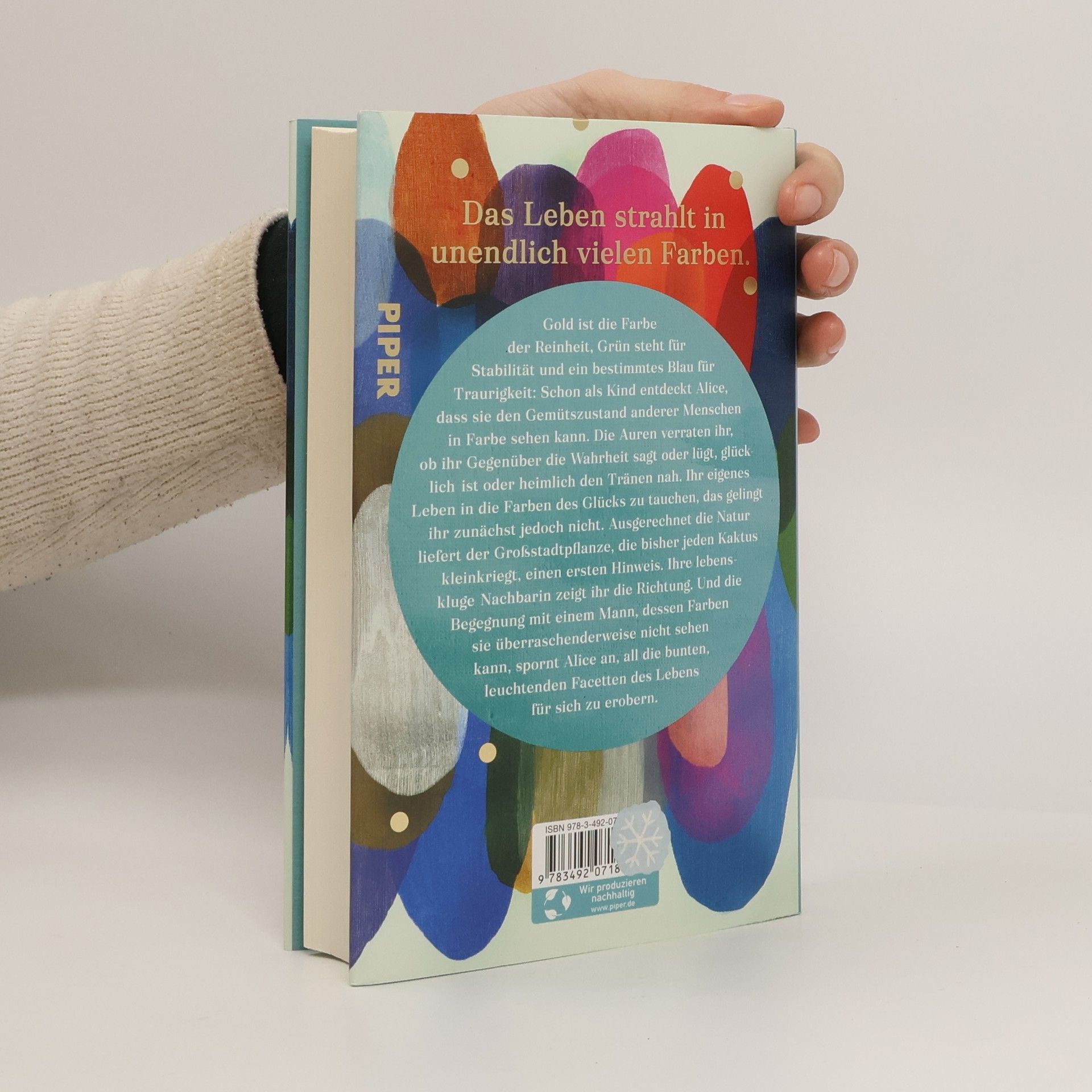 Das Leben strahlt in unendlich vielen Farben. Gold symbolisiert Reinheit, Grün steht für Stabilität und Blau für Traurigkeit. Alice entdeckt schon in ihrer Kindheit, dass sie die Gemütszustände anderer Menschen in Farben sehen kann. Diese Auren verraten ihr, ob jemand die Wahrheit sagt oder lügt, ob er glücklich ist oder traurig. Dennoch gelingt es Alice zunächst nicht, ihr eigenes Leben in die Farben des Glücks zu tauchen. Ein Hinweis kommt aus der Natur, die der Großstadtpflanze neue Perspektiven eröffnet. Ihre weise Nachbarin zeigt ihr den Weg, und die Begegnung mit einem Mann, dessen Farben sie nicht erkennen kann, wird zum Wendepunkt in ihrer Suche nach den bunten Facetten des Lebens. Cecelia Ahern, bekannt für ihre tiefgründigen und empathischen Geschichten, thematisiert in ihren Romanen zentrale Fragen des Lebens: Was ist Glück? Wer bin ich? Was gibt meinem Leben Sinn? Ihre Werke sind eine gelungene Mischung aus Dunkelheit und Licht, Trauer und Humor. In dieser Erzählung steht Alice im Mittelpunkt, die sich mutig den Herausforderungen ihres Lebens stellt, neue Stärken entdeckt und erkennt, dass ihre Gabe ein Geschenk ist. Die Geschichte ermutigt dazu, an sich selbst zu glauben und Träume zu verwirklichen.