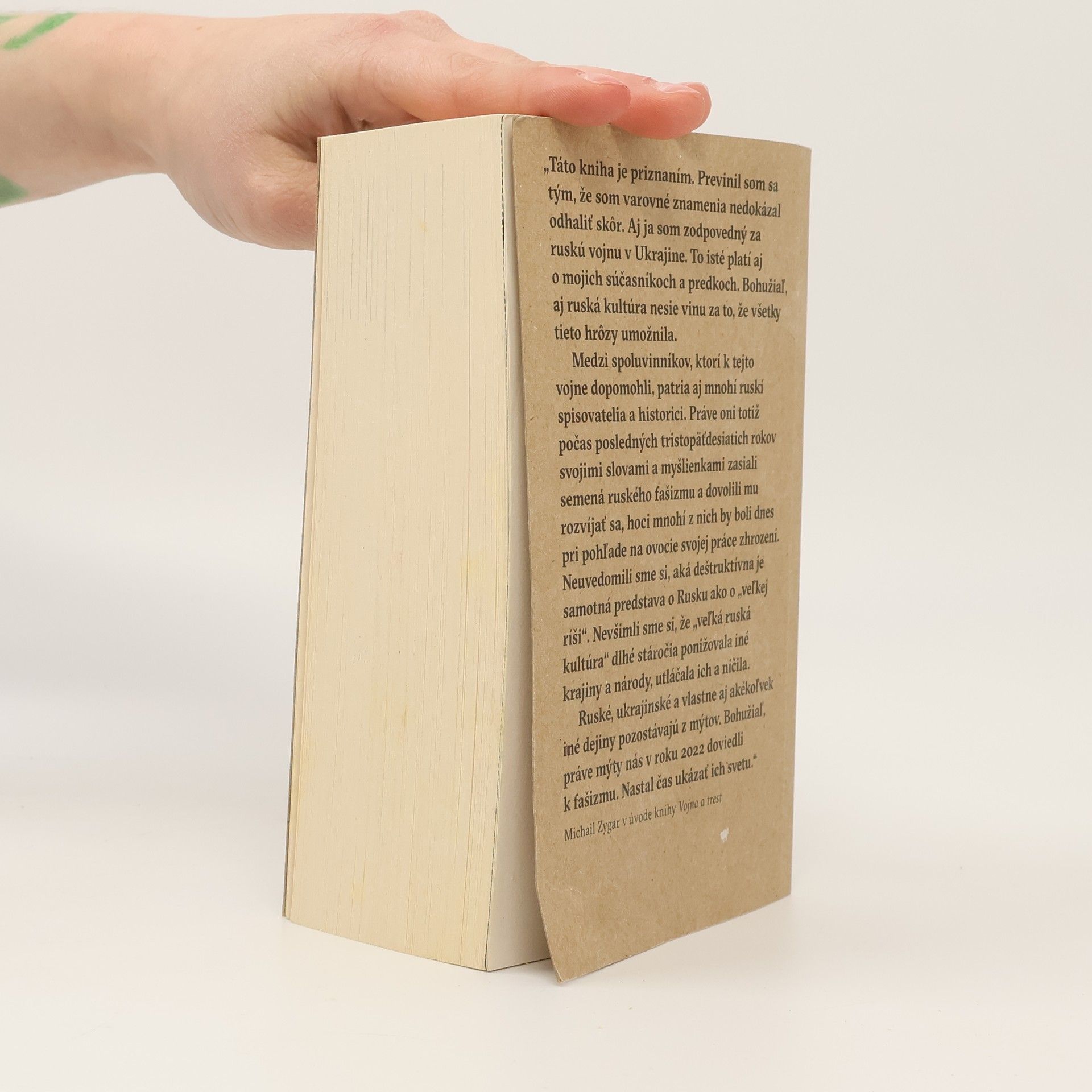 Kto je zodpovedný za vojnu? pýta sa ruský novinár Michail Zygar a odpovedá: my všetci! Autor bestselleru Všetci mocní Kremľa skúma korene ruskej nenávisti voči Ukrajine, z ktorej vyplynula najhoršia vojna tohto storočia. Zygar, ktorý nám už odhalil, kto v Kremli ťahá za nitky a aká bola cesta od imperializmu ku komunizmu, bol prekvapený 24. februára 2022. Podstatnú časť svojej predchádzajúcej knihy napísal v ukrajinskej Buči, kde sa jeho priateľka Nadja s ním prestala rozprávať, pretože ho považuje za imperialistu. V najnovšej knihe sa zamýšľa nad mýtmi a ľuďmi, ktorí sa stali obeťami „dejinnej logiky“ mocných. Zameriava sa na súčasníkov, ako je Volodymyr Zelenskyj, ktorý sa čoskoro stane nesmrteľným hrdinom, a na Vladimira Putina, symbol nadpozemského zla. Zygar, ktorý mal prístup k významným hráčom a študoval plány Kremľa, chronologicky vysvetľuje, ako sme sa dostali sem. Kniha nie je len o dejinách Ukrajiny a prebiehajúcej vojne, ale aj o detektívnom príbehu z pohľadu páchateľa, chronike útlaku Ukrajiny Ruskom za posledných päť storočí. Hoci kniha nemôže napraviť minulosť, môže zmeniť budúcnosť.