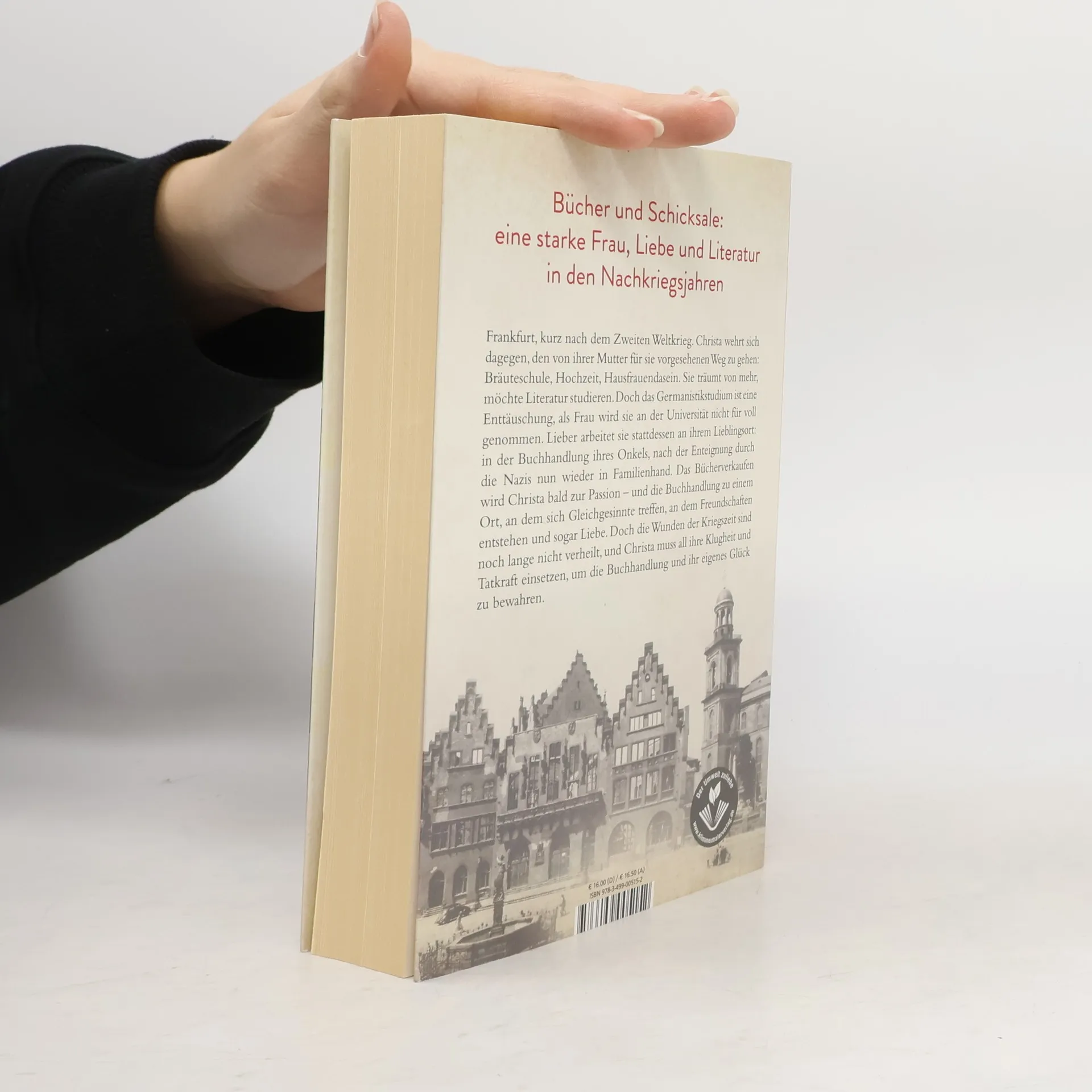 Bücher und Schicksale: Die Geschichte einer starken Frau, Liebe und Literatur in den 1940er Jahren. Frankfurt, kurz nach dem 2. Weltkrieg: Christa bricht enttäuscht ihr Germanistikstudium ab, weil sie als Frau an der Universität nicht für voll genommen wird. Zunächst aus Verlegenheit fängt sie an, in der Buchhandlung ihres Onkels auszuhelfen, die dieser nach der Enteignung durch die Nationalsozialisten nun wieder aufbaut. Bald schon wird das Bücherverkaufen für Christa zur Passion - und die Buchhandlung zu einem Ort, an dem sich Gleichgesinnte treffen, an dem Freundschaften entstehen und sogar Liebe. Doch noch sind die Wunden der Kriegszeit nicht verheilt, und Christa muss all ihre Klugheit und Tatkraft einsetzen, um die Buchhandlung und ihr eigenes Glück zu bewahren.