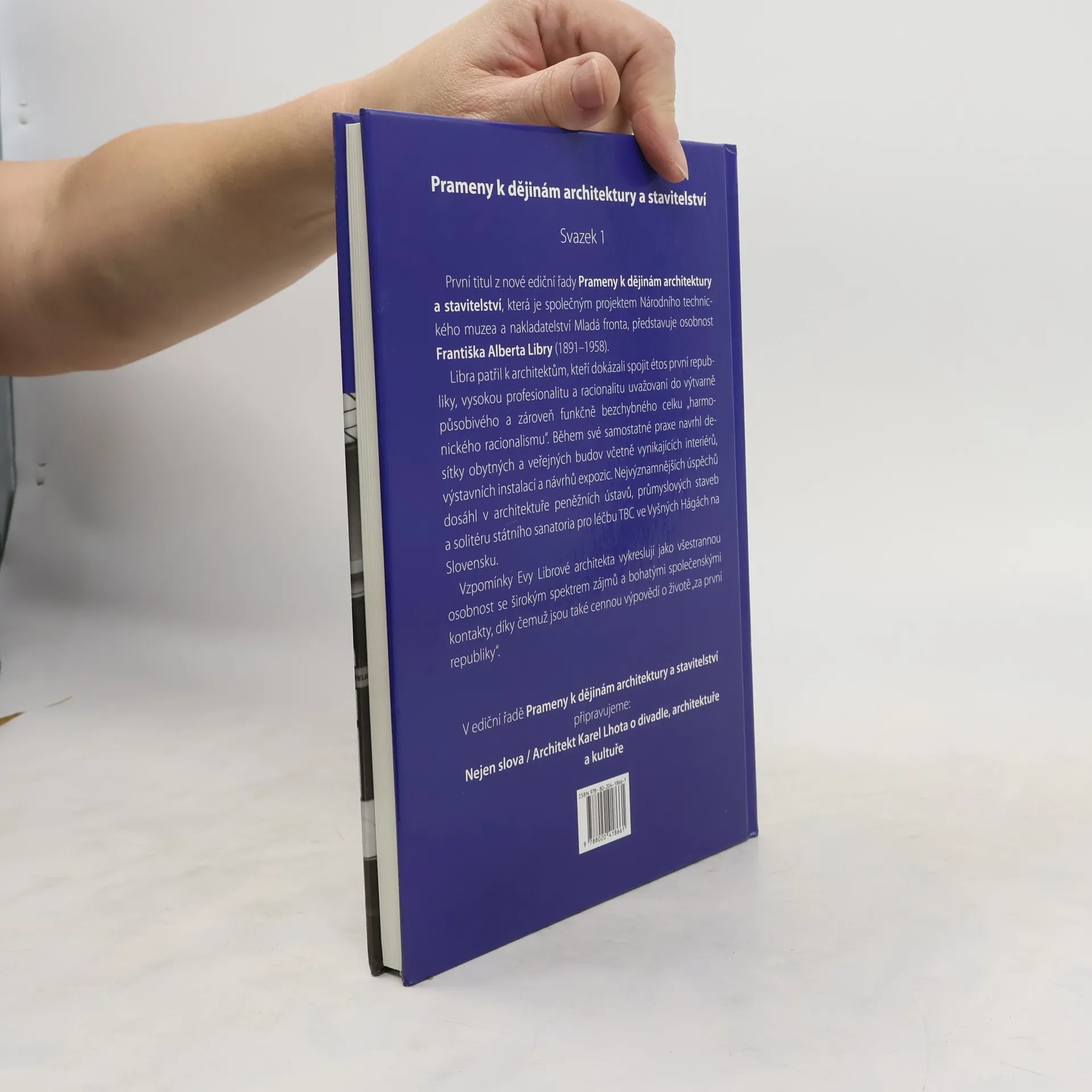 Pohled do soukromí jednoho z nejvýznamnějších architektů první republiky. První titul z nové ediční řady Prameny k dějinám architektury a stavitelství, která je společným projektem Národního technického muzea a nakladatelství Mladá fronta, představuje osobnost Františka Alberta Libry (1891-1958). Libra patřil k architektům, kteří dokázali spojit étos první republiky, vysokou profesionalitu a racionalitu uvažovaní do výtvarně působivého a zároveň funkčně bezchybného celku „harmonického racionalismu“. Během své samostatné praxe navrhl desítky obytných a veřejných budov včetně vynikajících interiérů, výstavních instalací a návrhů expozic. Nejvýznamnějších úspěchů dosáhl v architektuře peněžních ústavů, průmyslových staveb a solitéru státního sanatoria pro léčbu TBC ve Vyšných Hágách na Slovensku. Vzpomínky Evy Librové architekta vykreslují jako všestrannou osobnost se širokým spektrem zájmů a bohatými společenskými kontakty, díky čemuž jsou také cennou výpovědí o životě „za první republiky