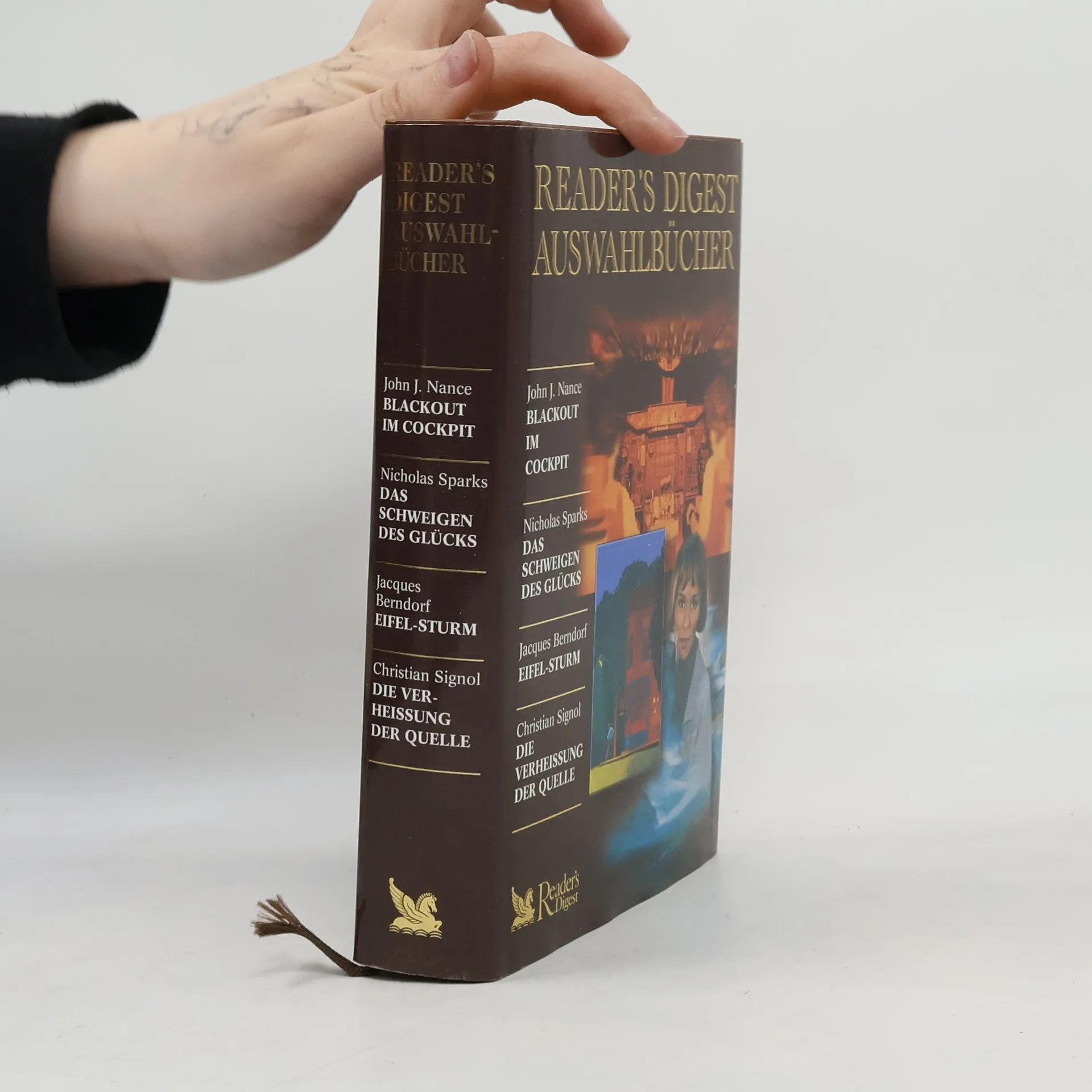 Reader's Digest Auswahlbücher. Blackout im Cockpit. Das Schweigen des Glucks. Eifel-sturm. Die Verheissung der Quelle, Nicholas Sparks, John J. Nance, Christian Signol, Jacques Berndorf