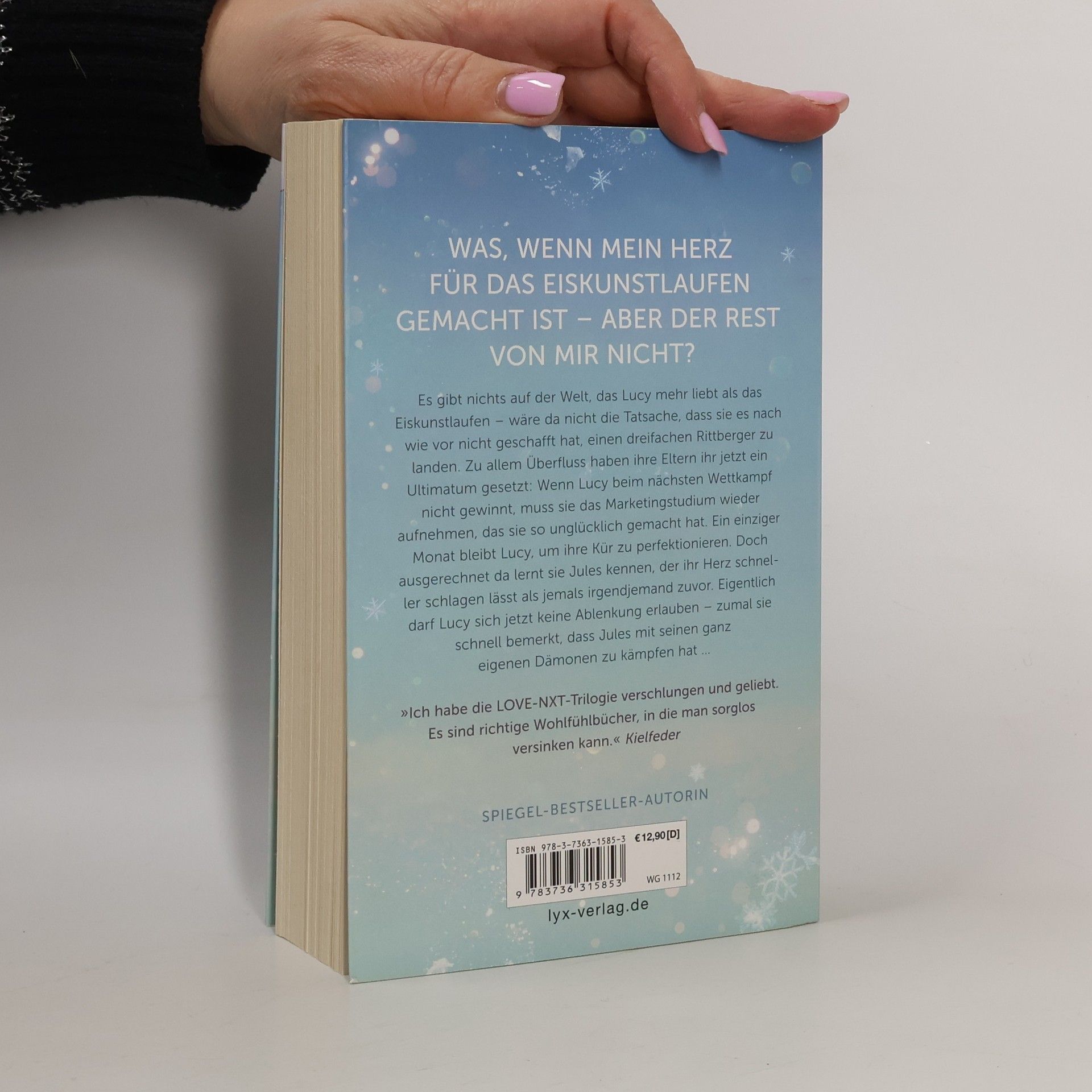 Was, wenn mein Herz für das Eiskunstlaufen gemacht ist - aber der Rest von mir nicht? Es gibt nichts auf der Welt, das Lucy mehr liebt als das Eiskunstlaufen - wäre da nicht die Tatsache, dass sie es nach wie vor nicht geschafft hat, einen dreifachen Rittberger zu landen. Zu allem Überfluss haben ihre Eltern ihr jetzt ein Ultimatum gesetzt: Wenn Lucy beim nächsten Wettkampf nicht gewinnt, muss sie das Marketingstudium wieder aufnehmen, das sie so unglücklich gemacht hat. Ein einziger Monat bleibt Lucy, um ihre Kür zu perfektionieren. Doch ausgerechnet da lernt sie Jules kennen, der ihr Herz schneller schlagen lässt als jemals irgendjemand zuvor. Eigentlich darf Lucy sich jetzt keine Ablenkung erlauben - zumal sie schnell bemerkt, dass Jules mit seinen ganz eigenen Dämonen zu kämpfen hat ... „Ich habe die LOVE-NXT-Trilogie verschlungen und geliebt. Es sind richtige Wohlfühlbücher, in die man sorglos versinken kann.“ KIELFEDER Band 2 der Reihe, RIGHT NOW (KEEP ME WARM), erscheint am 25. März 2022.