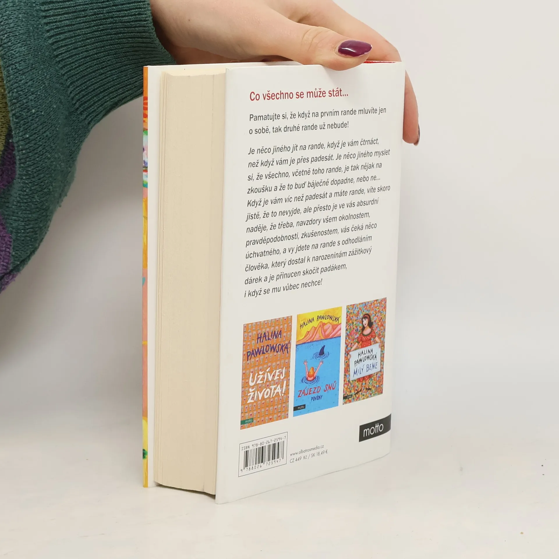 Krátké i dlouhé povídky Haliny Pawlowské. Pamatujte si, že když na prvním rande mluvíte jen o sobě, tak druhé rande už nebude! Je něco jiného jít na rande, když je vám čtrnáct, než když vám je přes padesát. Je něco jiného myslet si, že všechno, včetně toho rande, je tak nějak na zkoušku, a že to buď báječně dopadne, nebo ne Když je vám víc než padesát a máte rande, víte skoro jistě, že to nevyjde, ale přesto je ve vás absurdní naděje, že třeba, navzdory všem okolnostem, pravděpodobnosti, zkušenostem, vás čeká něco úchvatného a vy jdete na rande s odhodláním člověka, který dostal k narozeninám zážitkový dárek a je přinucen skočit s padákem, i když se mu vůbec nechce!