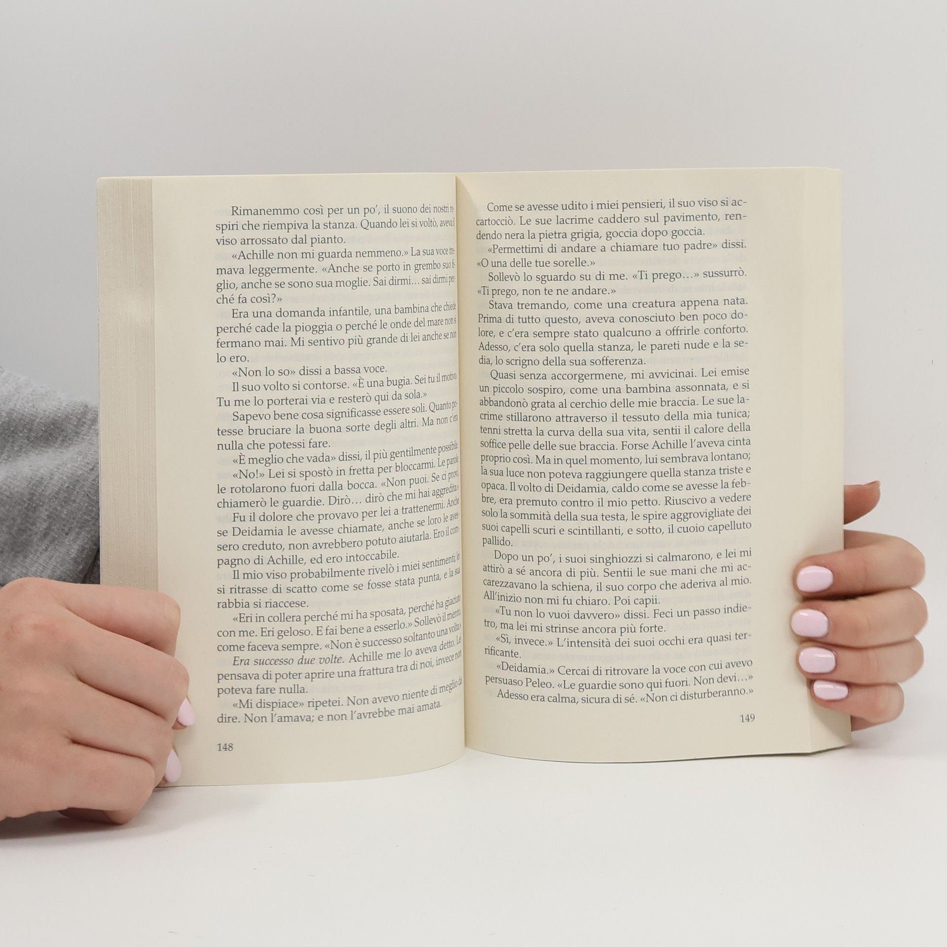 Dimenticate Troia, gli scenari di guerra, i duelli, il sangue, la morte. Dimenticate la violenza e le stragi, la crudeltà e l'orrore. E seguite invece il cammino di due giovani, prima amici, poi amanti e infine anche compagni d'armi - due giovani splendidi per gioventù e bellezza, destinati a concludere la loro vita sulla pianura troiana e a rimanere uniti per sempre con le ceneri mischiate in una sola, preziosissima urna. Madeline Miller, studiosa e docente di antichità classica, rievoca la storia d'amore e di morte di Achille e Patroclo, piegando il ritmo solenne dell'epica alla ricostruzione di una vicenda che ha lasciato scarse ma inconfondibili tracce: un legame tra uomini spogliato da ogni morbosità e restituito alla naturalezza con cui i greci antichi riconobbero e accettarono l'omosessualità. Patroclo muore al posto di Achille, per Achille, e Achille non vuole più vivere senza Patroclo. Sulle mura di Troia si profilano due altissime ombre che oscurano l'ormai usurata vicenda di Elena e Paride.
