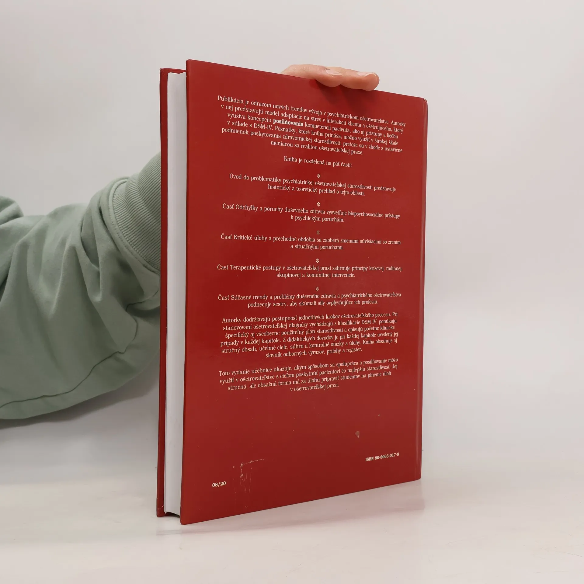 Táto učebnica pomôže sestre pri orientovaní sa v zložitej problematike duševného zdravia a jeho porúch v úsilí byť efektívnou pri uzdravovaní a zmierňovaní utrpenia duševne chorých pacientov. Nájde v nej aj inšpiráciu a návody, ako aktivovať zdroje v pacientovej osobnosti a jeho okolí.