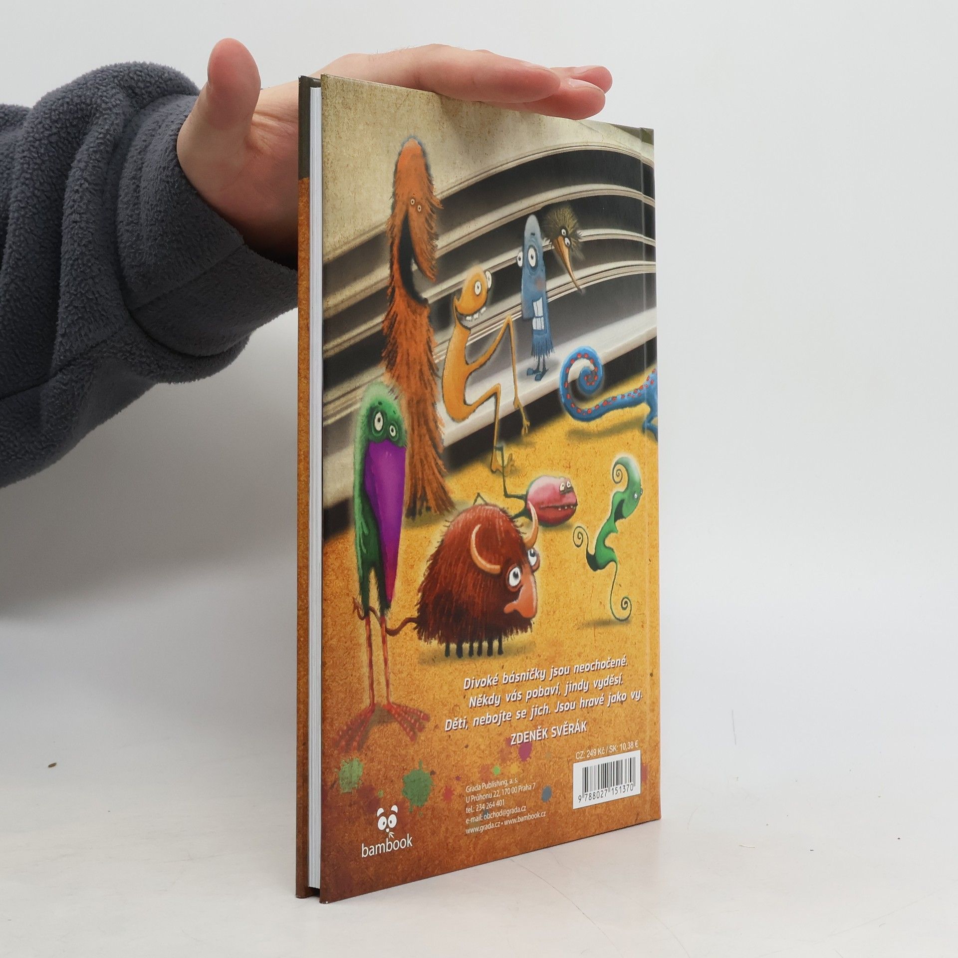 Veselé básničky plné hravého humoru skvěle zabaví děti i rodiče.Rozpustilé verše doprovázené vynalézavými a zábavnými ilustracemi jsou nejen o bytostech z pohádek, zvířátkách a lidech, ale také o věcech, které děti obklopují.Strašidla, skřítci, pidižvíci i další pohádková havěť se chovají poněkud nevypočitatelně, a stejně jako vzteklí sloni, drzé ropuchy, nespavé slepice a jiná zvířata často projevují i různé člověčí nectnosti.Básničky psané současným jazykem se hodí k recitaci i předčítání a díky hře se slovy pomohou čtenářům poznat češtinu a nenásilnou formou si procvičit výslovnost.