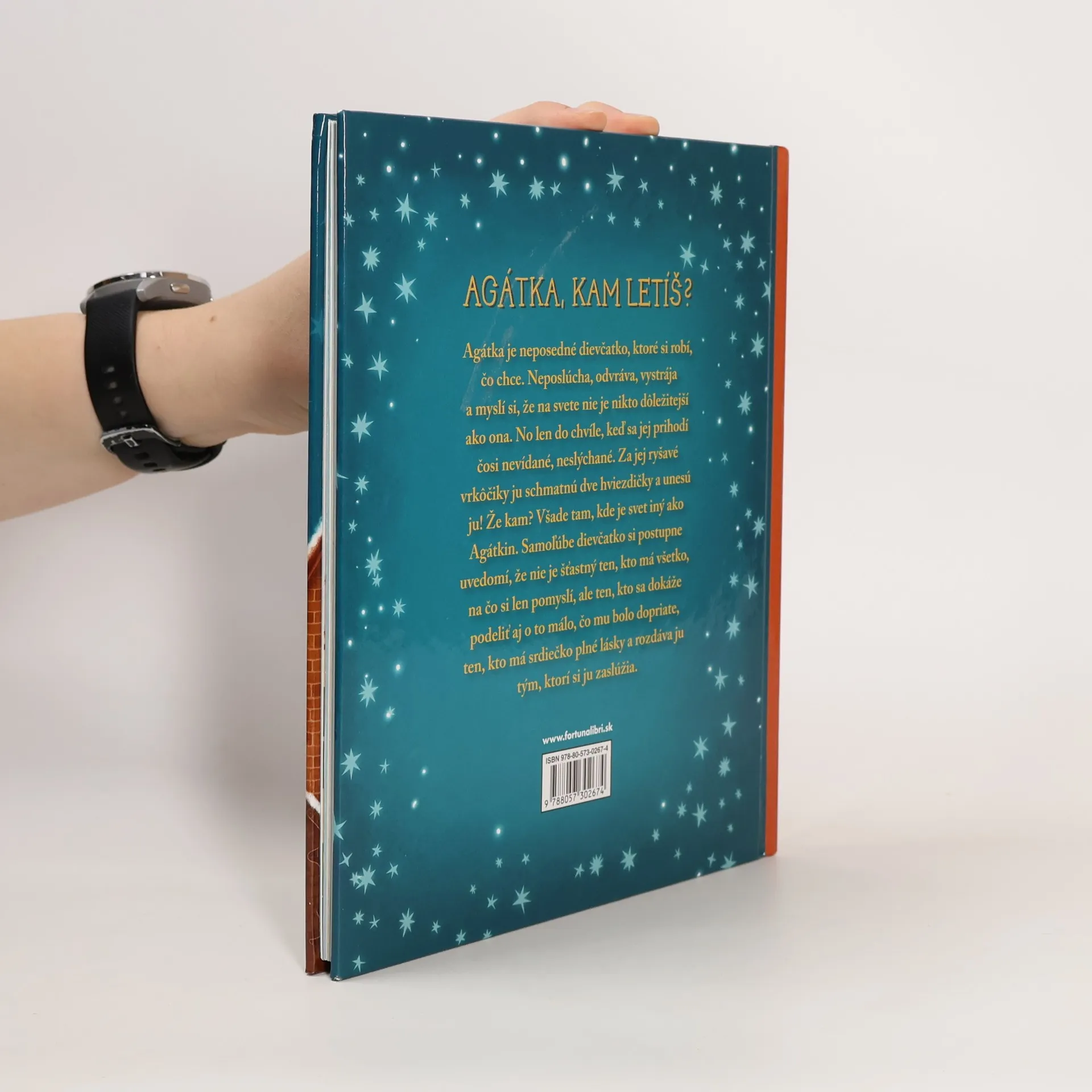 Agátka je neposedné dievčatko, ktoré si robí, čo chce. Neposlúcha, odvráva, vystrája a čosi nevídané, neslýchané. Za jej ryšavé vrkôčiky ju schmatnú dve hviezdičky a unesú ju! Že kam? Všade tam, kde je svet iný ako Agátkin. Samoľúbe dievčatko si postupne uvedomí, že nie je šťastný ten, kto má všetko, na čo si len pomyslí, ale ten, kto sa dokáže podeliť aj o to málo, čo mu bolo dopriate, ten, kto má srdiečko plné lásky a rozdáva ju tým, ktorí si ju zaslúžia.