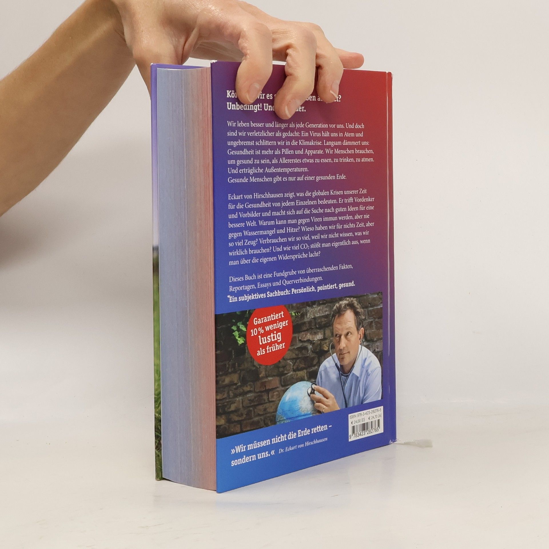Die großen Themen unserer Zeit in überraschenden Zusammenhängen Könnten wir es schöner haben als jetzt? Unbedingt! Und gesünder. Wir leben besser und länger als jede Generation vor uns. Und doch sind wir verletzlicher als gedacht: Ein Virus hält uns in Atem und ungebremst schlittern wir in die Klimakrise. Langsam dämmert uns: Gesundheit ist mehr als Pillen und Apparate. Wir Menschen brauchen, um gesund zu sein, als Allererstes etwas zu essen, zu trinken, zu atmen. Und erträgliche Außentemperaturen. Gesunde Menschen gibt es nur auf einer gesunden Erde. Eckart von Hirschhausen zeigt, was die globalen Krisen unserer Zeit für die Gesundheit von jedem Einzelnen von uns bedeuten. Er trifft Vordenker und Vorbilder und macht sich auf die Suche nach guten Ideen für eine bessere Welt. Warum kann man gegen Viren immun werden, aber nie gegen Wassermangel und Hitze? Wieso haben wir für nichts Zeit, aber so viel Zeug? Verbrauchen wir so viel, weil wir nicht wissen, was wir wirklich brauchen? Und wie viel CO2 stößt man eigentlich aus, wenn man über die eigenen Widersprüche lacht? Dieses Buch ist eine Fundgrube von überraschenden Fakten, Reportagen, Essays und Querverbindungen. Ein subjektives Sachbuch: persönlich, pointiert, gesund.