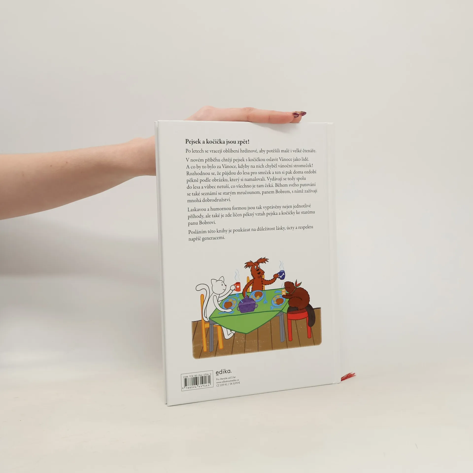Pejsek a kočička se po letech vracejí, aby potěšili malé i velké čtenáře. V novém příběhu se dozvíte, jak si splnili svoje velké přání a oslavili Vánoce podobně jako lidé. O Štědrém dnu u nich nechyběl zářící stromeček plný ozdob, také krásně zabalené dárky se našly a celý dům byl prosycen lákavými vůněmi. Jak se jim podařilo všechno zařídit, jaká dobrodružství při tom zažili a s kým se seznámili? Začtěte se do vlídného vyprávění plného lásky, úcty a respektu napříč generacemi...