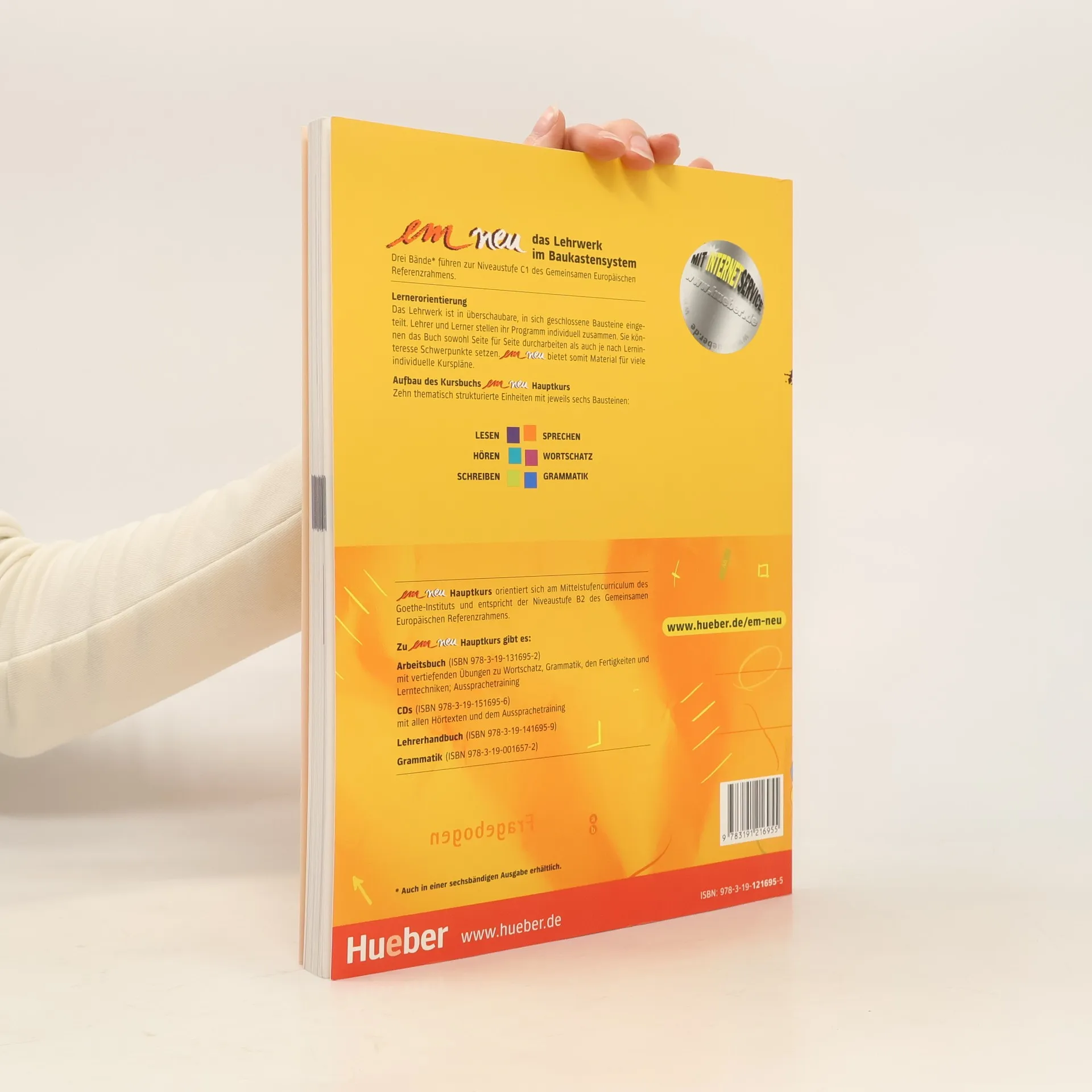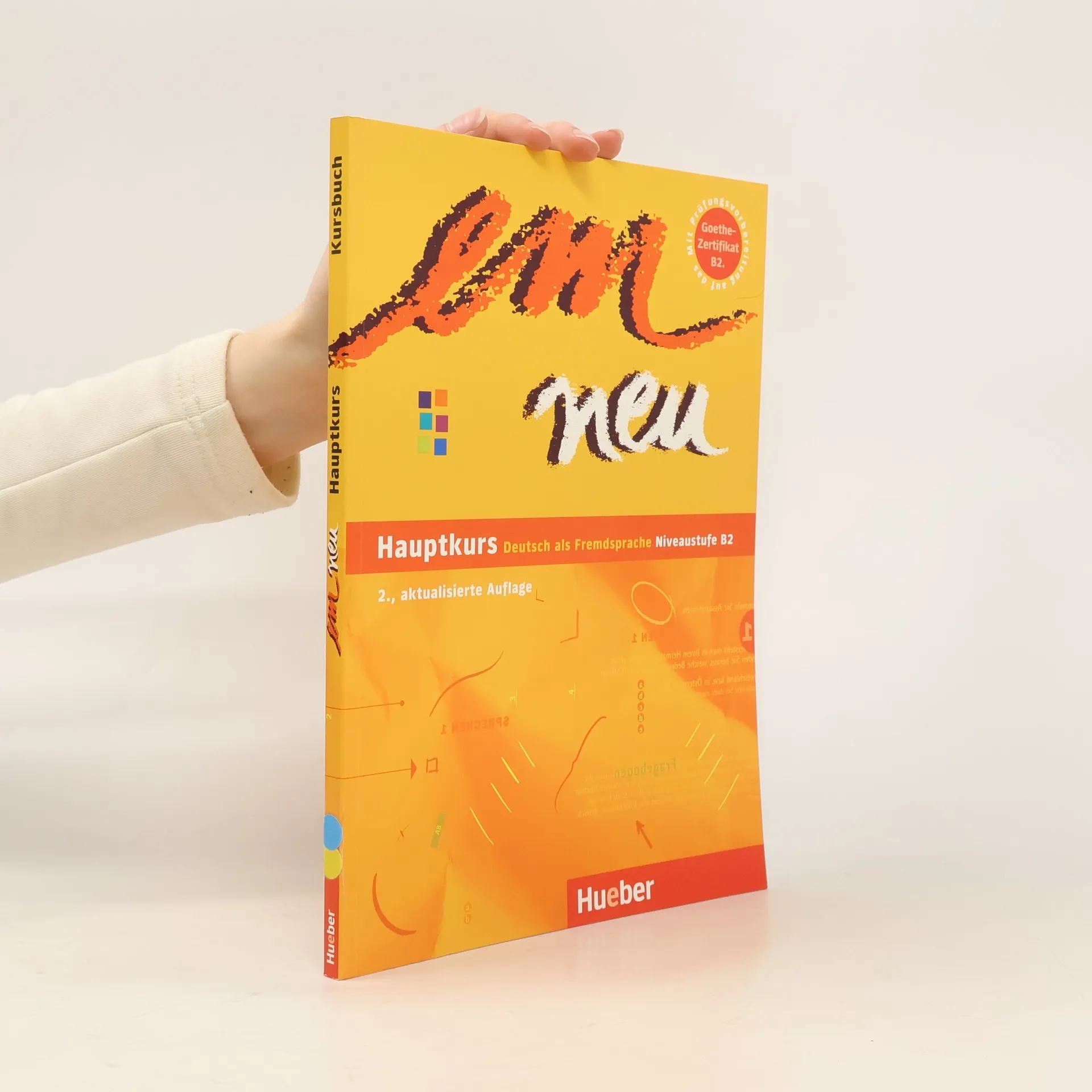 \"em neu\" führt in drei Bänden zur Zentralen Mittelstufenprüfung des Goethe-Instituts (Niveaustufen B2 und C1 nach dem Gemeinsamen Europäischen Referenzrahmen). Der Hauptkurs ist auf den Europäischen Referenzrahmen (Niveaustufe B2) ausgerichtet. Kursteilnehmer mit guten Lernerfolgen können bereits nach dem Hauptkurs die Zentrale Mittelstufenprüfung ablegen. Der Band bietet jetzt kürzere Lektionen für schnellere Durchnahmezeiten pro Lektion sowie zwei zusätzliche Lektionen aus den Themenbereichen Konsum, Gesundheit, Ernährung und Fitness. Aktuelle Lese- und Hörtexte und neue Abbildungen und Fotos sorgen für eine inhaltliche und optische Auffrischung. Darüber hinaus sind die Übungen jetzt mit der em Übungsgrammatik eng verzahnt. Geblieben ist die bewährte Konzeption mit der Gliederung der Fertigkeitenschulung in Bausteinen: Lesen - Hören - Schreiben - Sprechen - Wortschatz - Lerntechniken - Grammatik - Aussprachetraining. Die Lerntechniken werden in der Neubearbeitung im Arbeitsbuch behandelt.
