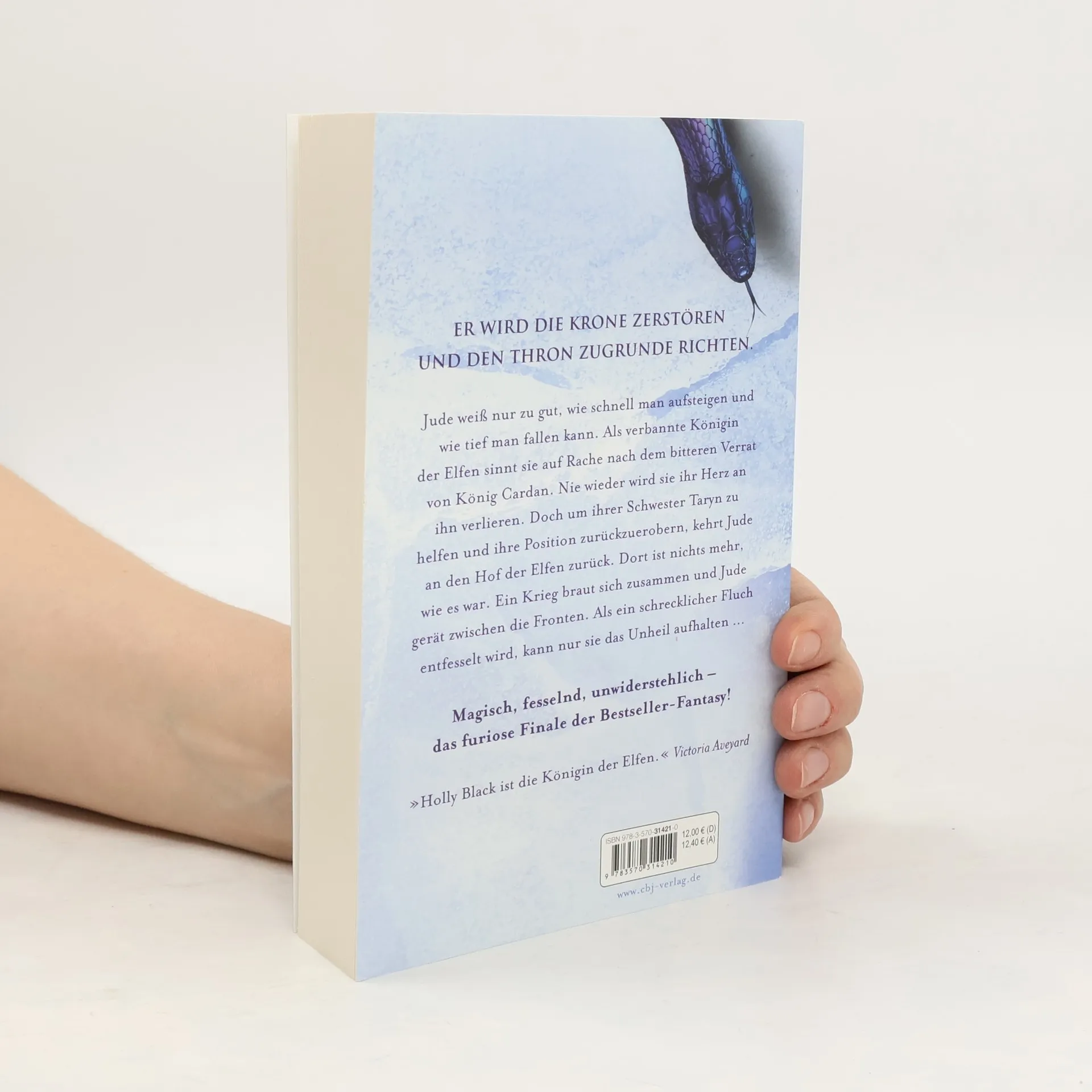 Er wird die Krone zerstören und den Thron zugrunde richten … An die Macht zu kommen ist einfacher, als an der Macht zu bleiben – das weiß keiner besser als Jude. Zwar ist sie die neue Elfenkönigin, doch König Cardan hat sie verraten und ins Exil geschickt. Um ihrer Schwester Taryn zu helfen, deren Leben in Gefahr ist, kehrt Jude nun an den Hof der Elfen zurück, entschlossen, ihre Position zurückzuerobern und Cardan nie wieder in ihr Herz zu lassen. Doch am Hof ist nichts mehr, wie es war. Ein Krieg braut sich zusammen und Jude gerät sofort zwischen die Fronten. Als ein mächtiger Fluch entfesselt wird, muss sie sich entscheiden zwischen ihren ehrgeizigen Plänen und ihrer Sterblichkeit … Holly Black ist die Königin der Fantasy und erschafft schillernde, gefährliche Welten, denen man ab dem ersten Satz verfällt. Grandios geschrieben, bildgewaltig ausgestaltet – und gnadenlos spannend!