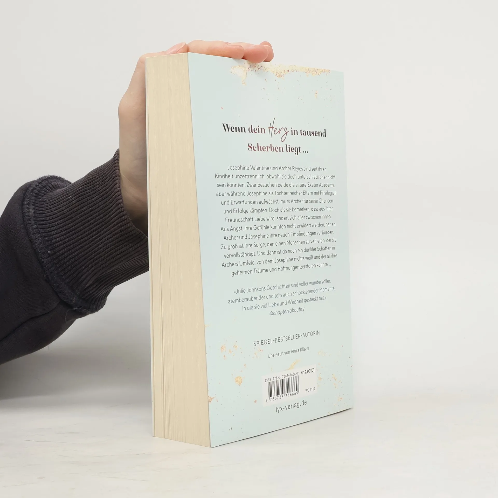 Wenn dein Herz in tausend Scherben liegt ... Josephine Valentine und Archer Reyes sind seit ihrer Kindheit unzertrennlich, obwohl sie doch unterschiedlicher nicht sein könnten: Zwar besuchen beide die elitäre Exeter Academy, aber während Josephine als Tochter reicher Eltern mit Privilegien und Erwartungen aufwächst, muss Archer für seine Chancen und Erfolge kämpfen. Doch als sie bemerken, dass aus ihrer Freundschaft Liebe wird, ändert sich alles zwischen ihnen. Aus Angst, ihre Gefühle könnten nicht erwidert werden, halten Archer und Josephine ihre neuen Empfindungen verborgen. Zu groß ist ihre Sorge, den einen Menschen zu verlieren, der sie vervollständigt. Und dann ist da noch ein dunkler Schatten in Archers Umfeld, von dem Josephine nichts weiß und der all ihre geheimen Träume und Hoffnungen zerstören könnte „Julie Johnsons Geschichten sind voller wundervoller, atemberaubender und teils auch schockierender Momente, in die sie viel Liebe und Weisheit gesteckt hat.“ @CHAPTERSABOUTISY Erster Band des ANYMORE-Duetts