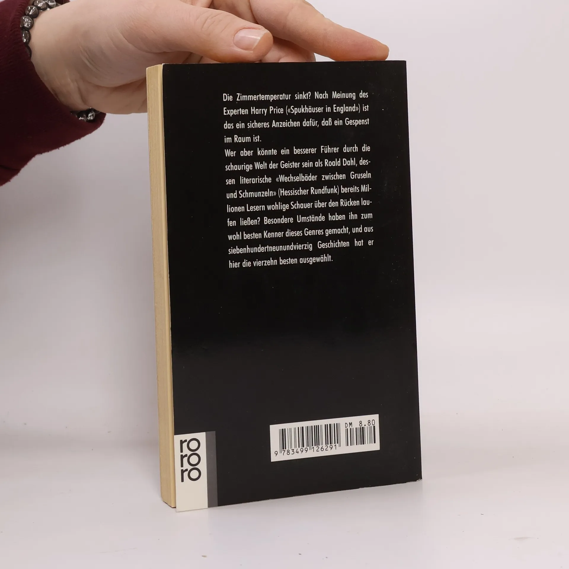 Die Zimmertemperatur sinkt? Nach Meinung des Experten Harry Price ("Spukhäuser in England") ist das ein sicheres Anzeichen dafür, dass ein Gespenst im Raum ist. Wer aber könnte ein besserer Führer durch die Welt der Geister sein als Roald Dahl, dessen literarische "Wechselbäder zwischen Gruseln und Schmunzeln" (Hessischer Rundfunk) bereits Millionen Lesern wohlige Schauer über den Rücken laufen ließen? Besondere Umstände haben ihn zum wohl besten Kenner dieses Genres gemacht, und aus siebenhundertneunundvierzig Geschichten hat er hier die vierzehn besten ausgewählt.