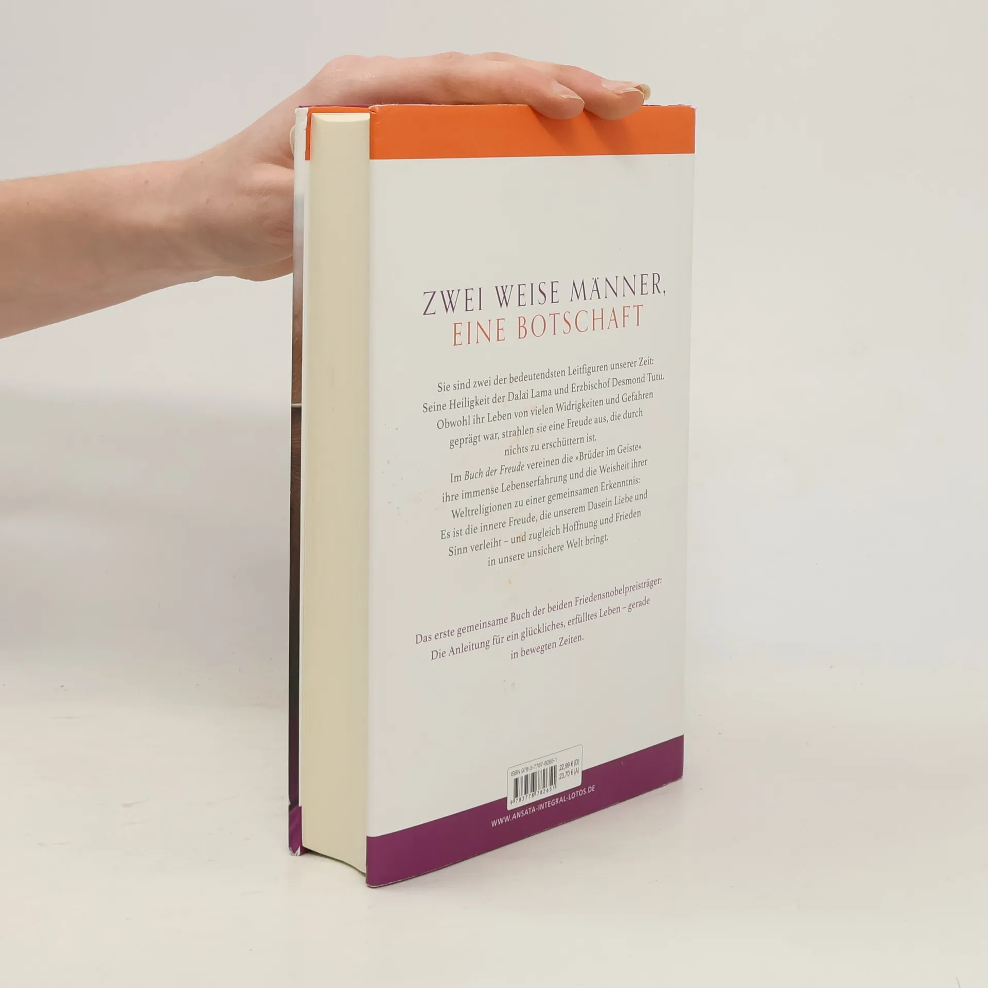 Zwei weise Männer, eine Botschaft Sie sind zwei der bedeutendsten Leitfiguren unserer Zeit: Seine Heiligkeit der Dalai Lama und Erzbischof Desmond Tutu. Obwohl ihr Leben von vielen Widrigkeiten und Gefahren geprägt war, strahlen sie eine Freude aus, die durch nichts zu erschüttern ist. Im Buch der Freude vereinen die „Brüder im Geiste“ ihre immense Lebenserfahrung und die Weisheit ihrer Weltreligionen zu einer gemeinsamen zentralen Erkenntnis: Nur tief empfundene Freude kann sowohl das Leben des Einzelnen als auch das globale Geschehen spürbar zum Positiven wandeln. Unabhängig von allen Herausforderungen und Krisen, mit denen wir täglich konfrontiert werden, können wir diese Energie in uns entfalten und weitergeben. So wird die Freude zur Triebkraft, die unserem Dasein mehr Liebe und Sinn verleiht – und zugleich Hoffnung und Frieden in unsere unsichere Welt bringt.