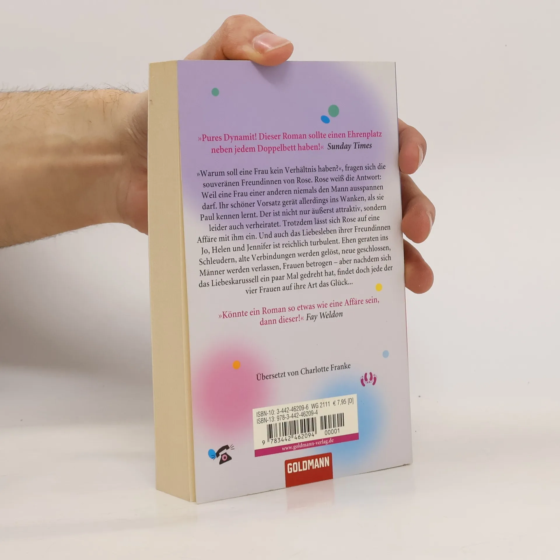Ein klarer und kluger Blick auf das wahre Liebesleben, voller Charme und Humor. „Warum soll eine Frau kein Verhältnis haben?“, fragen sich die souveränen Freundinnen von Rose. Rose weiß die Antwort: Weil eine Frau einer anderen niemals den Mann ausspannen darf. Ihr schöner Vorsatz gerät allerdings ins Wanken, als sie Paul kennen lernt. Der ist nicht nur äußerst attraktiv, sondern leider auch verheiratet. Trotzdem lässt sich Rose auf eine Affäre mit ihm ein. Und auch ihre Freundinnen Jo, Helen und Jennifer werden von dem Liebes- und Ehekarussell fortgetragen …