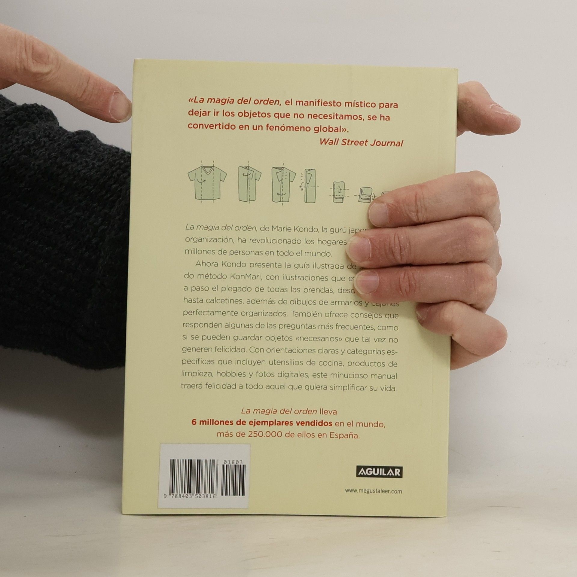 Una guía con ilustraciones paso a paso del afamado método KonMari, de la autora deLa magia del ordenMarie Kondo. Atrévete a vivir solo con lo esencial, con lo bello, con lo que realmente te aporta felicidad. La magia del orden, de Marie Kondo, la gurú japonesa de la organización, ha revolucionado los hogares y las vidas de millones de personas a lo largo del mundo. Ahora Kondo presenta una guía ilustrada de su aclamado método KonMari con ilustraciones que explican paso a paso el plegado de todas las prendas desde camisetas hasta calcetines, además de dibujos de armarios y cajones perfectamente organizados. También aporta consejos sobre algunas de las preguntas más frecuentes como si se pueden guardar objetos «necesarios» que tal vez no generen felicidad. Con orientaciones claras y categorías específicas que incluyen utensilios de cocina, productos de limpieza, hobbies y fotos digitales, este minucioso manual traerá felicidad a todo aquel que quiera simplificar su vida.