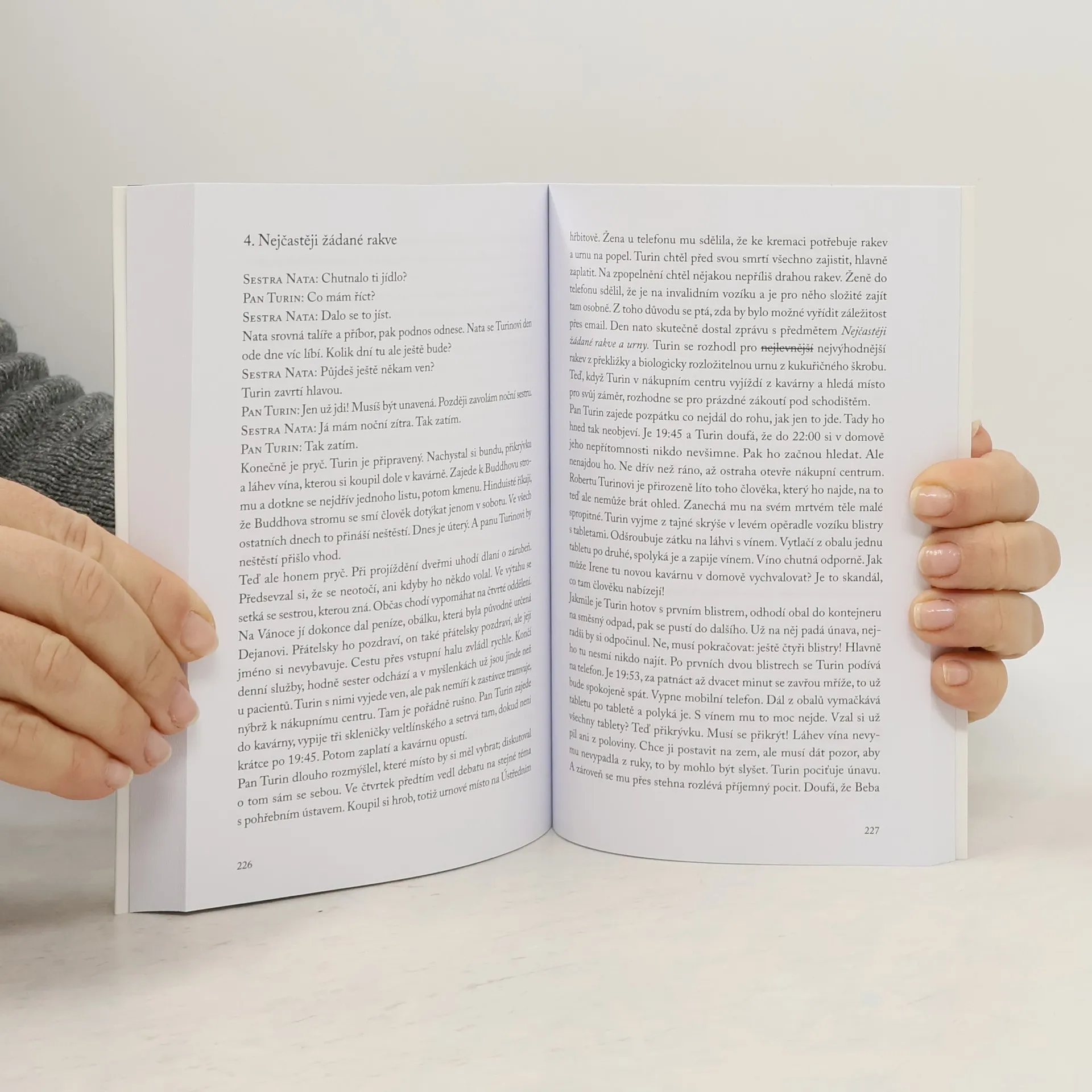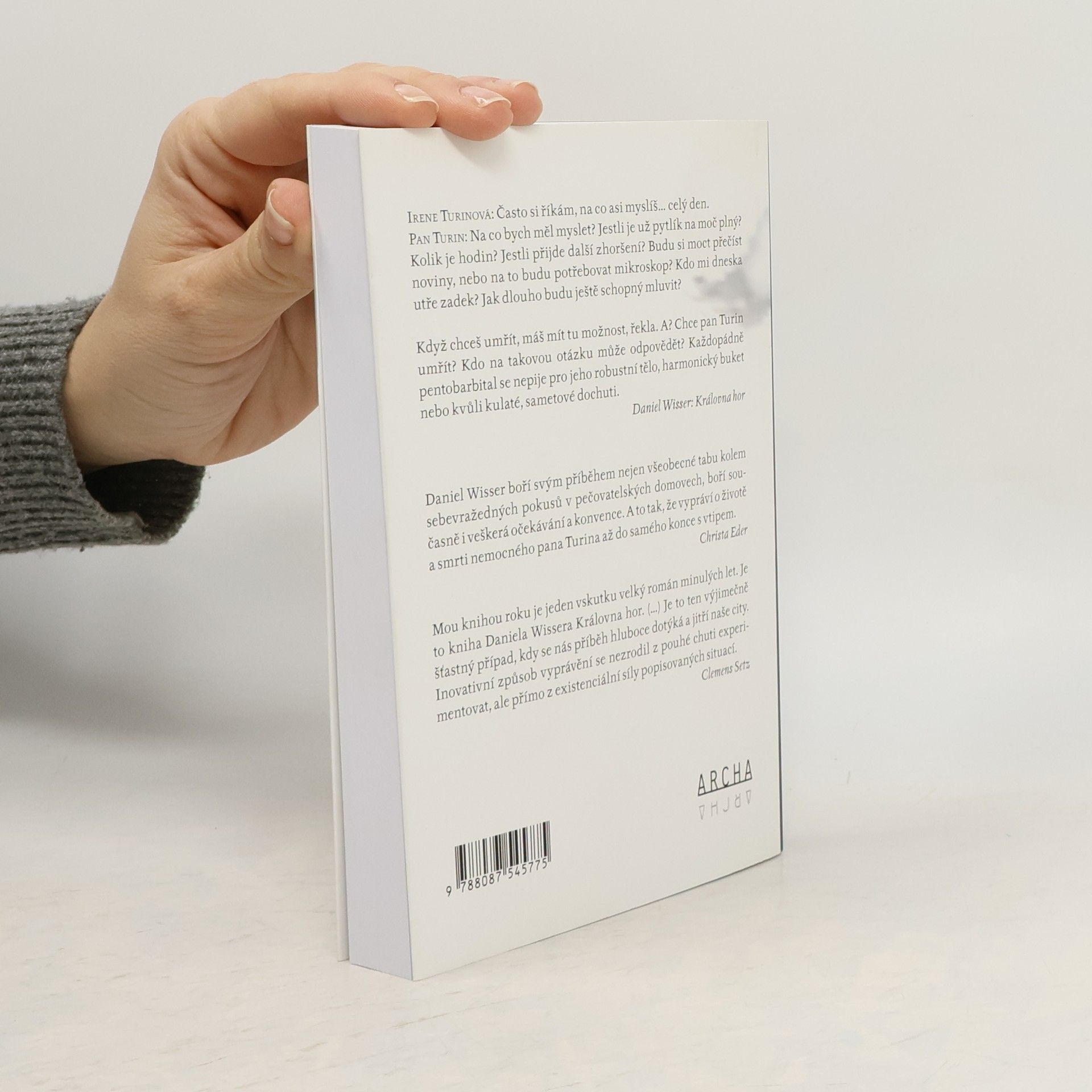 Královna hor je důvěrná přezdívka nemoci, jíž trpí pětačtyřicetiletý obyvatel pečovatelského ústavu pan Turin. Bývalý úspěšný podnikatel v oboru IT, bezdětný, spokojeně ženatý, onemocněl v 27 letech roztroušenou sklerózou. Od té doby se jeho život beznadějně hroutí. Ve 32 letech zůstal upoután na invalidní vozík, o čtyři roky později se stal jeho novým domovem pečovatelský ústav. Ze společenského požitkáře Roberta Turina se tak stal „pan Turin“, odkázaný na cizí péči. Žije si tam po svém a nový domov má vlastně rád. Ignoruje, co se mu nezamlouvá, v ústavní kavárně popíjí veltlínské, laškuje se sestřičkami, debatuje s dávno mrtvým kocourem. Svůj příběh vypráví ve třetí osobě, jakoby o někom jiném. Občas si přehrává dialogy, které by mohl se svým okolím vést, v replikách si sděluje reakce ostatních na vlastní myšlenky, polemizje s nimi. Po celou dobu důsledně sleduje jediný cíl: sehnat někoho, kdo by ho odvezl do Švýcarska, kde je povolená asistovaná sebevražda. A myslí to smrtelně vážně. Svébytně napsaný román nepostrádá černý humor ani laskavé emoční zaujetí.