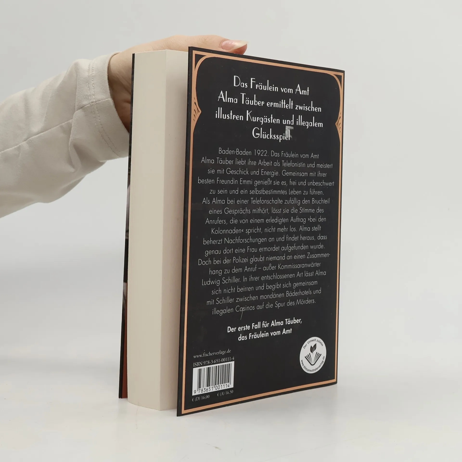 Alma Täuber ermittelt zwischen illustren Kurgästen und illegalem Glücksspiel – der erste Fall für das Fräulein vom Amt Baden-Baden 1922. Das Fräulein vom Amt Alma Täuber liebt ihre Arbeit als Telefonistin und meistert sie mit Geschick und Energie. Gemeinsam mit ihrer besten Freundin Emmi genießt sie es, frei und unbeschwert zu sein und ein selbstbestimmtes Leben zu führen. Als Alma bei einer Telefonschalte zufällig den Bruchteil eines Gesprächs mithört, lässt sie die Stimme des Anrufers, die von einem erledigten Auftrag »bei den Kolonnaden« spricht, nicht mehr los. Alma stellt beherzt Nachforschungen an und findet heraus, dass genau dort eine Frau ermordet aufgefunden wurde. Doch bei der Polizei glaubt niemand an einen Zusammenhang zu dem Anruf – außer Kommissaranwärter Ludwig Schiller. In ihrer entschlossenen Art lässt Alma sich nicht beirren und begibt sich gemeinsam mit Schiller zwischen mondänen Bäderhotels und illegalen Casinos auf die Spur des Mörders.