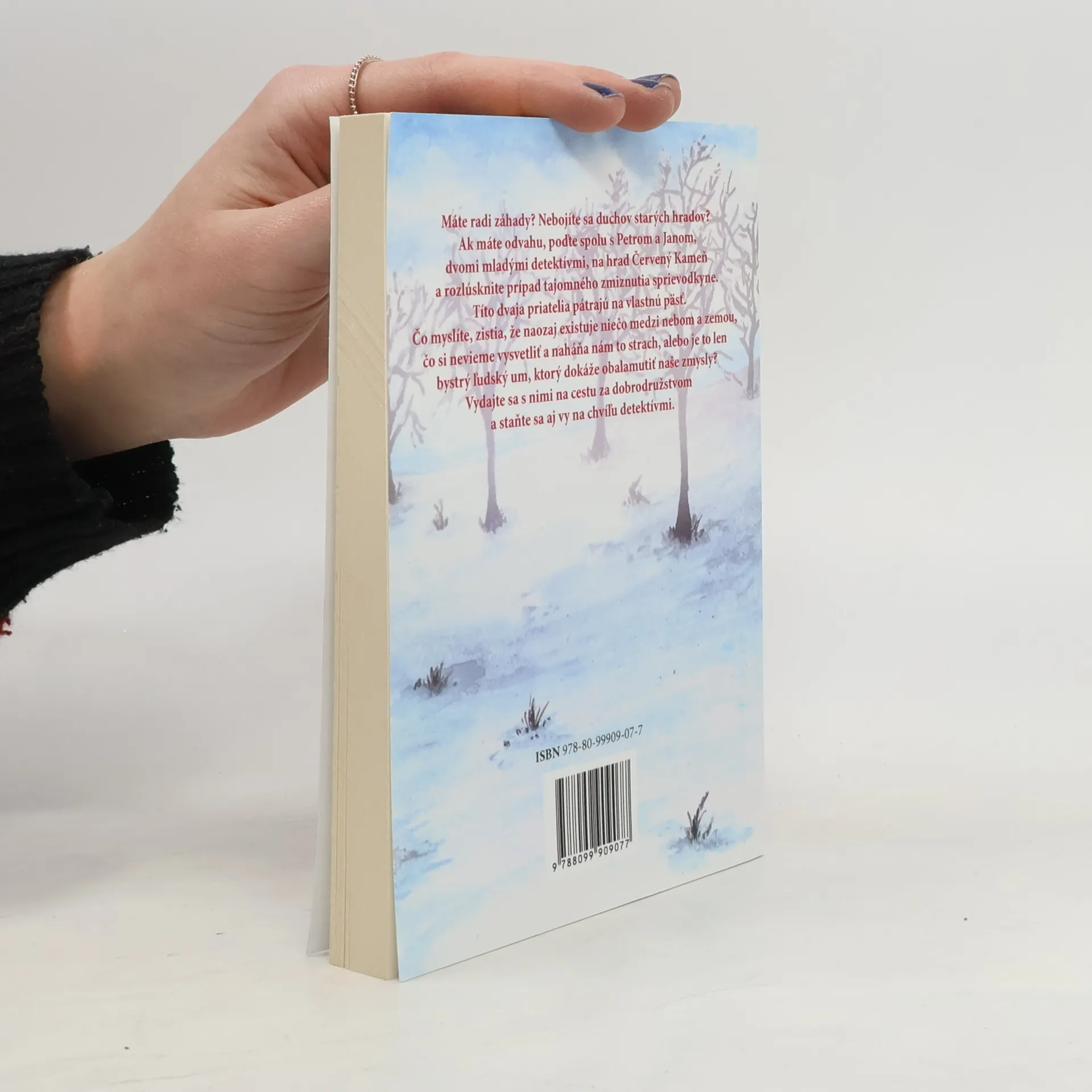 Máte radi záhady? Nebojíte sa duchov starých hradov? Ak máte odvahu, poďte spolu s Petrom a Janom, dvomi mladými detektívmi, na hrad Červený Kameň a rozlúsknite prípad tajomného zmiznutia sprievodkyne. Títo dvaja priatelia pátrajú na vlastnú päsť. Čo myslíte, zistia, že naozaj existuje niečo medzi nebom a zemou, čo si nevieme vysvetliť a naháňa nám to strach, alebo je to len bystrý ľudský um, ktorý dokáže obalamutiť naše zmysly? Vydajte sa s nimi na cestu za dobrodružstom a staňte sa aj vy na chvílu detektívmi.