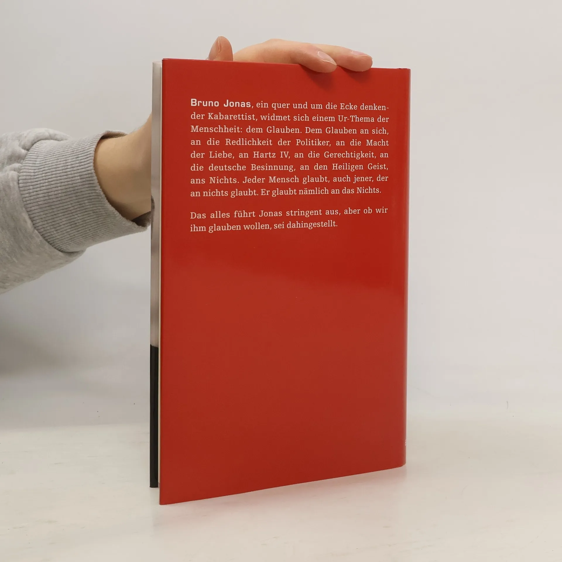 Bruno Jonas, ein kreativer Kabarettist, erkundet in seinem neuen Werk das zentrale Thema des Glaubens – an sich selbst, an die Integrität der Politiker, an die Liebe, an Hartz IV, an Schönheitsoperationen und sogar an das Nichts. Jeder Mensch glaubt, selbst derjenige, der an nichts glaubt, glaubt an das Nichts. Jonas führt diese Gedanken klar und stringent aus, doch die Frage bleibt, ob wir ihm glauben müssen. Er beleuchtet die komplexe Materie des Glaubens und bietet überraschende Einsichten. Der Autor stellt zu Beginn die Frage: "Kann ich mir vertrauen?" und antwortet mit einem fast nihilistischen "nein". Doch diesem Zweifel steht ein starkes "JA" gegenüber – der Glaube an das Gute. Jonas reflektiert darüber, wie wir oft alles glauben, was uns gesagt wird, von Kindheit an, und wie es in religiösen Fragen oft einfacher ist, alles zu glauben. Zweifel hingegen können uns in Schwierigkeiten bringen, und er führt uns zu den dunkleren Aspekten des Glaubens, wie dem Glauben an das Böse. Die Herausforderung, alles zu glauben, stellt sich jedem irgendwann. Dennoch, bedingungsloses Glauben erleichtert das Leben. Jonas fragt, unter welchen Bedingungen wir bereit sind zu glauben, und betont, dass Glauben allgegenwärtig ist – nicht nur im Glaubensbereich, sondern auch in den Naturwissenschaften. Letztlich bleibt der Glaube ein unverzichtbarer Teil unserer Existenz.