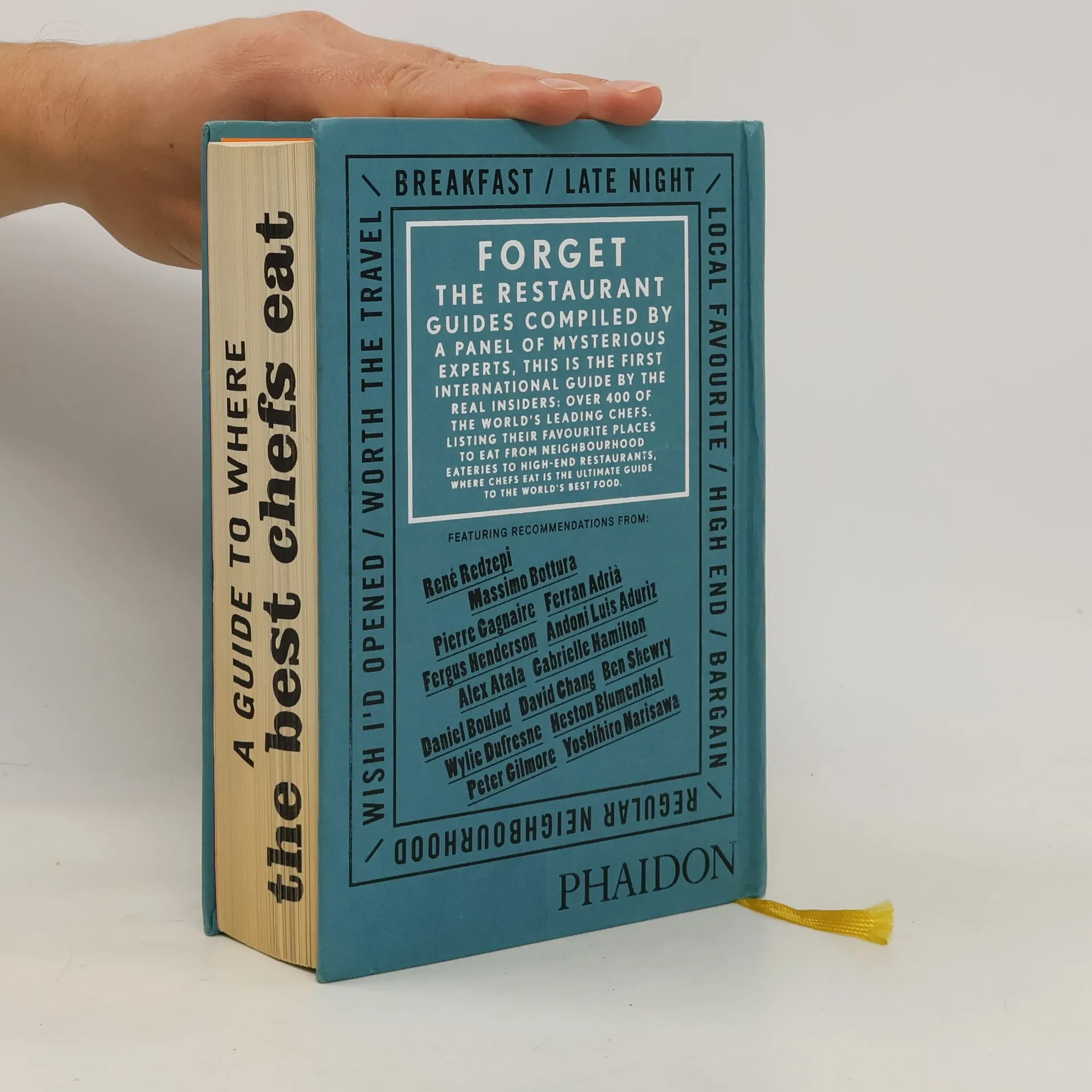 Finally. . .the first international restaurant guidebook by the real insiders: over 400 of the world's top chefs. From bargain noodle joints to high-end restaurants; late night haunts to all day breakfasts; neighborhood eateries to destination restaurants, Where Chefs Eat reveals over 2,000 personal recommendations by chefs of their top places to eat in all major cities around the world. With entertaining reviews, quotes from the chefs, clever maps, and an easy-to-use system of organization, Where Chefs Eat breaks the mold of the traditional guidebook. Find out where to eat, when to go, and what to order. It's like having a top chef as your best friend to give you advice whenever you need to book a reservation. Chef contributors include: Hugh Acheson, Ferran Adria, Alex Atala, Michael Anthony, John Besh, Daniel Boulud, April Bloomfield, Heston Blumenthal, Sean Brock, David Chang, Wylie Dufresne, Gabrielle Hamilton, Fergus Henderson, Daniel Humm, Corey Lee, Anito Lo, Matt Molina, Carlo Mirarchi, Magnus Nilsson, Ken Oringer, Daniel Patterson, Rene Redzepi, Andy Ricker, Eric Ripert, Marcus Samuelsson, Ben Shewry, Craig Stoll, and hundreds more.