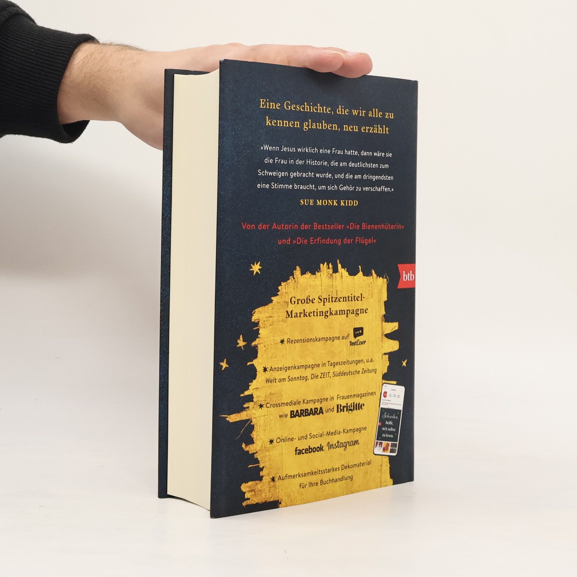 Eine spannende Geschichte weiblicher Selbstfindung: Mein Name ist Ana. Ich war die Frau von Jesus aus Nazareth. So beginnt die fiktive Lebensgeschichte von Ana, der Gefährtin Jesu, im Jahr 16 nach Christus im von Römern besetzten Galiläa. Ana wächst in einer wohlhabenden jüdischen Familie auf, ist klug und hat einen rebellischen Geist. Sie lernt Lesen und Schreiben, studiert die Thora und beginnt heimlich, die Geschichten vergessener Frauen der Heiligen Schrift aufzuzeichnen: Eva, Sarah, Rebecca, Rachel und Ruth. Mit vierzehn soll sie an einen alten Witwer verheiratet werden, was sie entsetzt. Doch ein junger Mann mit dunklen Locken und sanften Augen erkennt ihre Verzweiflung und hilft ihr, was alles verändert. Die Autorin versteht es, Frauen eine Stimme zu geben, die sich dem Rollenverständnis ihrer Zeit widersetzen. Ana folgt ihrer Sehnsucht, kämpft für ihre Freiheit und schreibt die Geschichte, die wir alle zu kennen glauben, neu. Sue Monk Kidd zeigt Jesus als Menschen und stellt ihm eine Frau zur Seite, die ihm auf Augenhöhe begegnet. Beide ergänzen sich in ihrem spirituellen Sehnen, Liebe und Weitsicht. Der Roman fesselt von der ersten Seite an und berührt tief.