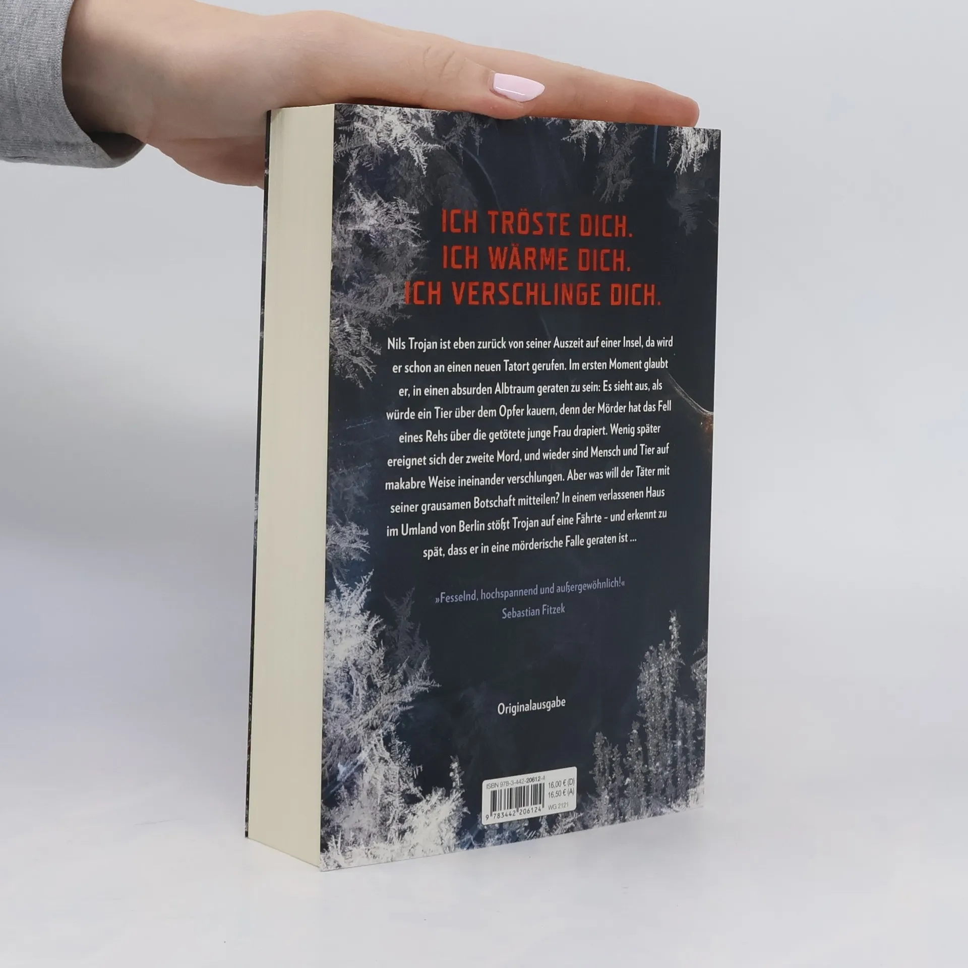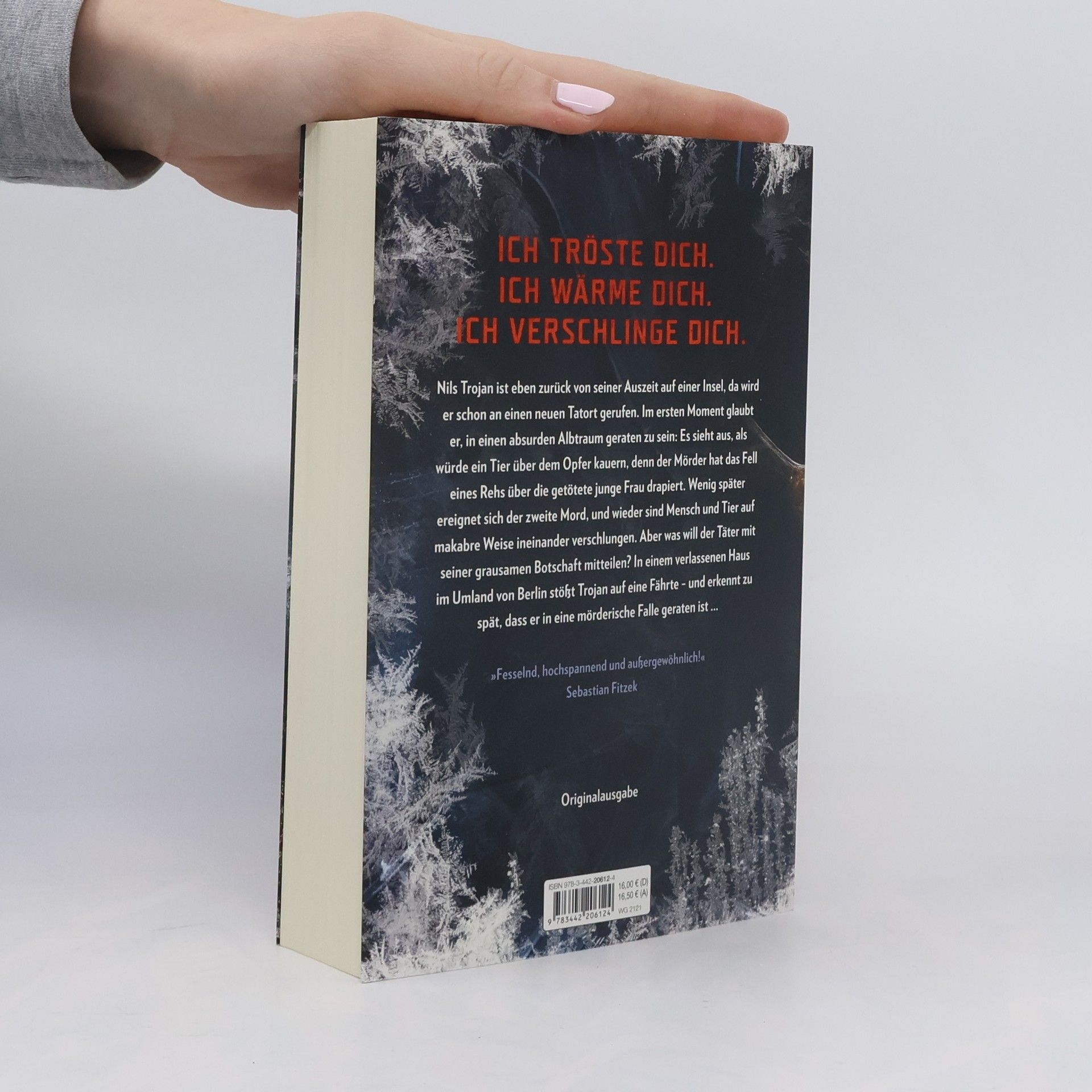 Nils Trojan ist eben zurück von seiner Auszeit auf einer Insel, da wird er schon an einen neuen Tatort gerufen. Im ersten Moment glaubt er, in einen absurden Albtraum geraten zu sein: Es sieht aus, als würde ein Tier über dem Opfer kauern, denn der Mörder hat das Fell eines Rehs über die getötete junge Frau drapiert. Wenig später ereignet sich der zweite Mord, und wieder sind Mensch und Tier auf makabre Weise ineinander verschlungen. Aber was will der Täter mit seiner grausamen Botschaft mitteilen? In einem verlassenen Haus im Umland von Berlin stößt Trojan auf eine Fährte – und erkennt zu spät, dass er in eine mörderische Falle geraten ist ...