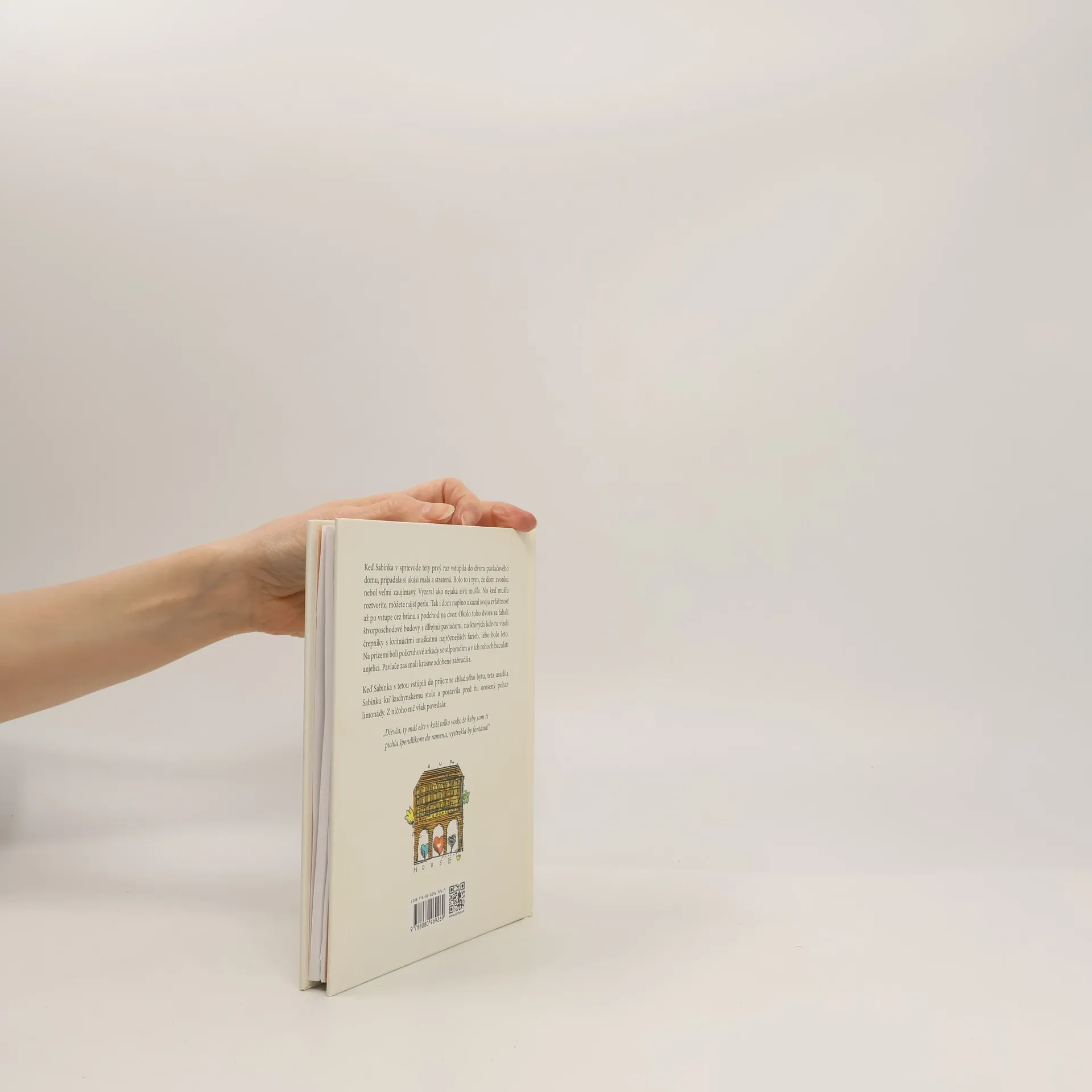 Ilustrovaná rozprávková kniha s podtitulom Grétka, teta a podivní obyvatelia jedného domu. Príbeh je o Sabínke, ktorá zažíva objavuje tajomné zákutia v pavlačovom dome u svojej tety a zoznamuje sa s jeho obyvateľmi. Keď Sabínka v sprievode tety prvý raz vstúpila do dvora pavlačového domu, pripadala si akási malá a stratená. Bolo to i tým, že dom zvonku nebol veľmi zaujímavý. Vyzeral ako nejaká sivá mušľa. No keď mušľu roztvoríte, môžete nájsť perlu. Tak i dom naplno ukázal svoju zvláštnosť až po vstupe cez bránu a podchod na dvor. Okolo toho dvora sa ťahali štvorposchodové budovy s dlhými pavlačami, na ktorých kde-tu viseli črepníky s kvitnúcimi muškátmi najrôznejších farieb, lebo bolo leto. Na prízemí boli polkruhové arkády so stĺporadím a v ich rohoch bacuľatí anjelici. Pavlače zas mali krásne zdobené zábradlia. Keď Sabínka s tetou vstúpili do príjemne chladného bytu, teta usadila Sabínku ku kuchynskému stolu a postavila pred ňu orosený pohár limonády. Z ničoho nič však povedala: „Dievča, ty máš ešte v koži toľko vody, že keby som ti pichla špendlíkom do ramena, vystrekla by fontána!“