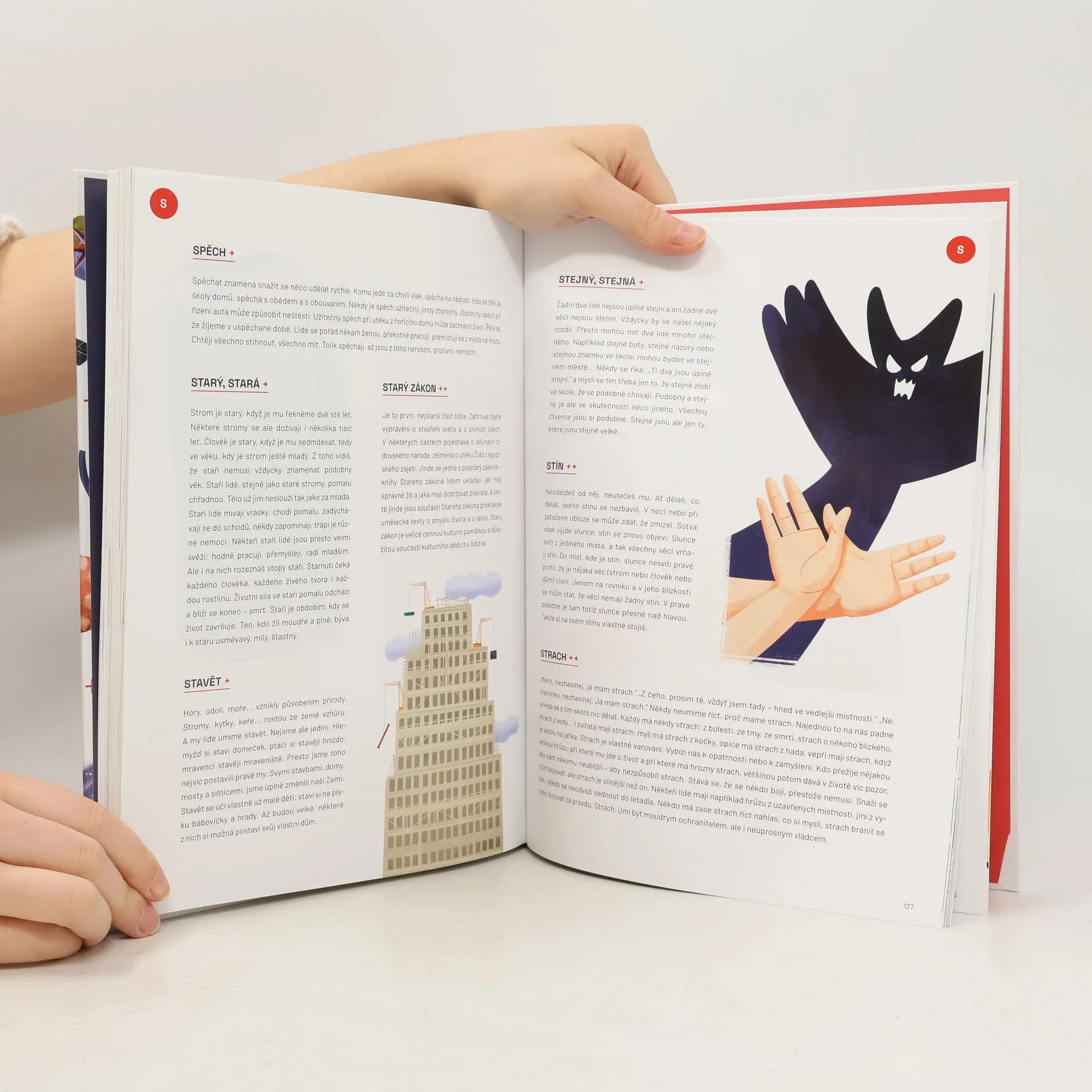 Pokoušeli jste se někdy dětem vysvětlit, co je to láska, radost, pomoc, rok nebo demokracie? S abstraktními pojmy to může být docela složité, protože si je nemůžeme prohlédnout, ani si na ně sáhnout. A právě proto vznikla tato jedinečná encyklopedie! Najdete v ní více než 500 hesel, která jsou rozdělena do tří úrovní podle obtížnosti a složitosti. Takže s touto knihou vás už žádná zvídavá otázka malého rozumbrady nezaskočí – ať už se bude vaše ratolest zajímat o pocity, povolání či přírodní nebo společenské jevy. O nádherně barevné a veselé ilustrace se postaral oceňovaný výtvarník Jakub Cenkl.