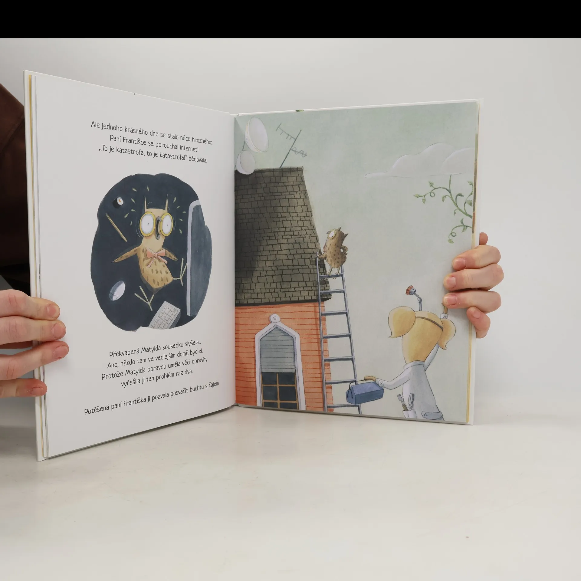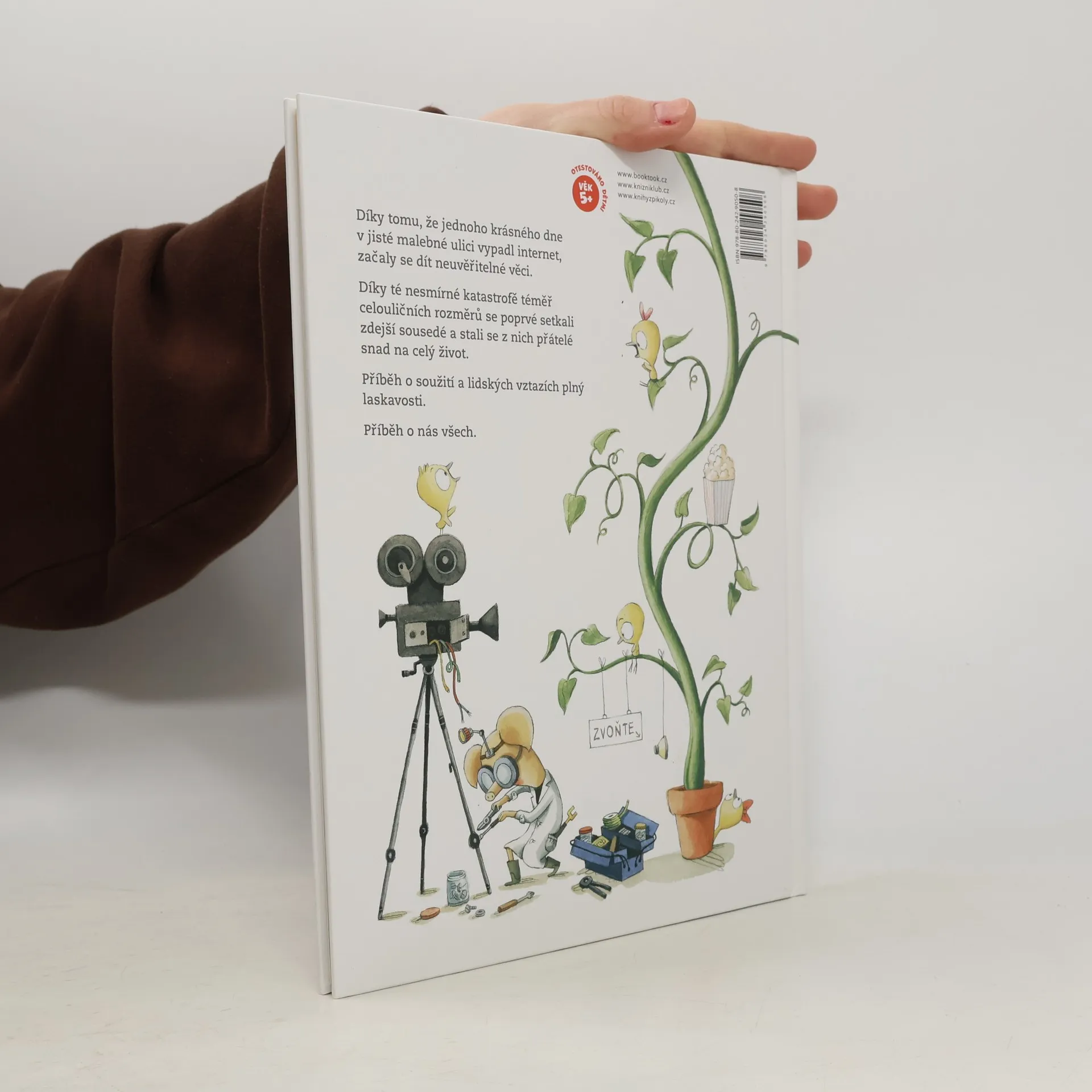 Bylo nebylo jedno sousedství a zdálo se jako každé jiné. Byly tu domy, trávníky, lampy i stromy. A také tu vedle sebe žili myška, kocour, sova, liška, zlobr a slepice. Sousedé, kteří si sotva kývli na pozdrav. Jednoho dne však vypadne internet. Dokáže taková malá událost něco změnit? Překonají sousedé strach, nesmělost a stud a najdou k sobě cestu?