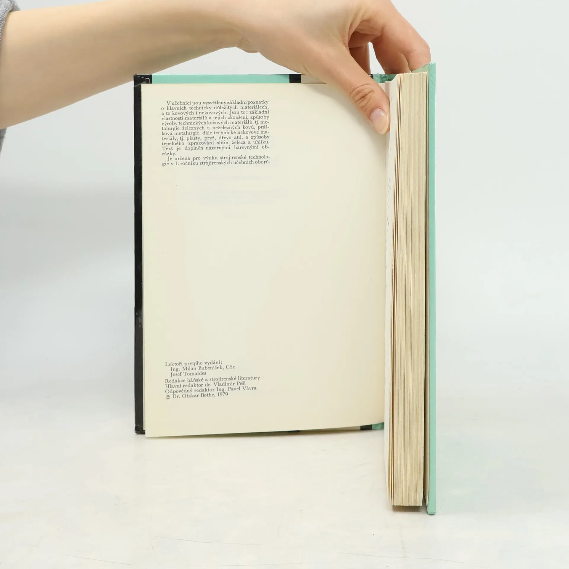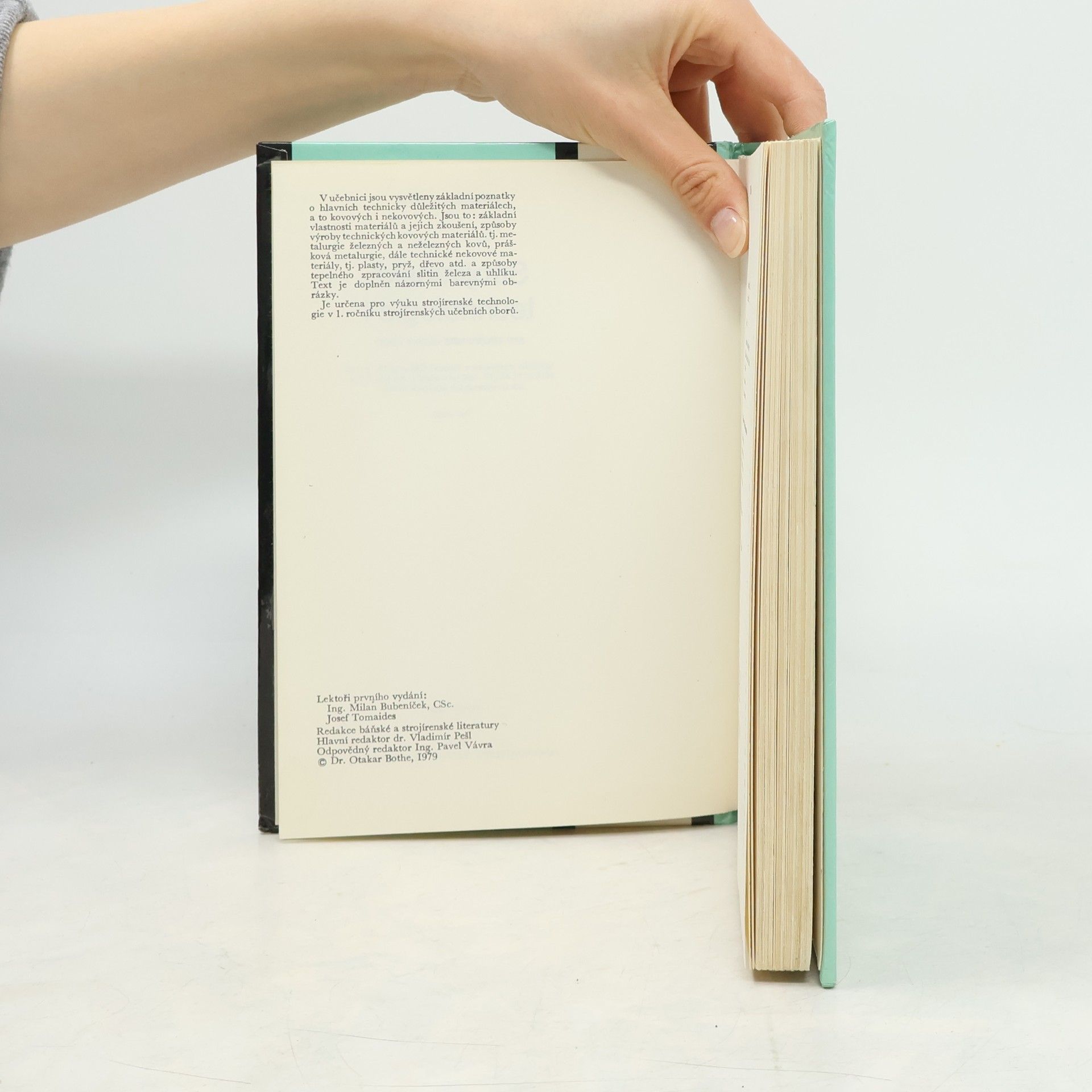 V učebnici jsou vysvětleny základní poznatky o fyzikálních, chemických, mechanických a technologických vlastnostech nejdůležitějších strojírenských materiálů, dále o způsobu zpracování technických materiálů a jejich použití. Popsány jsou i základy metalurgie a tepelného zpracování materiálů.