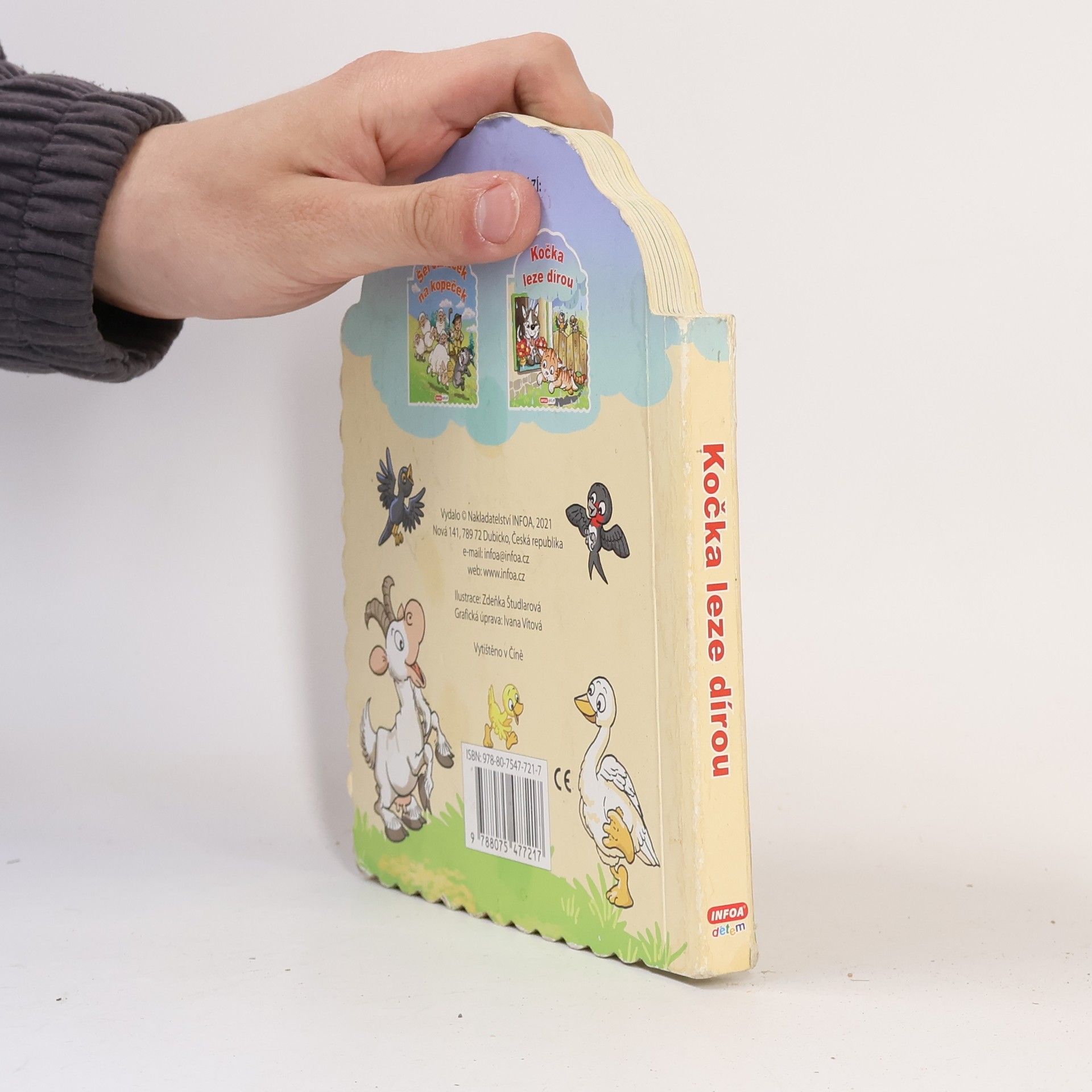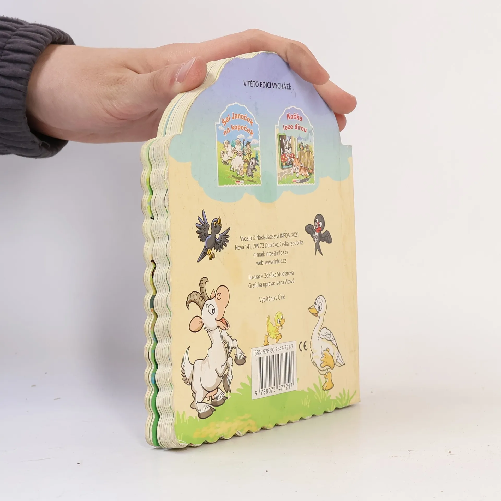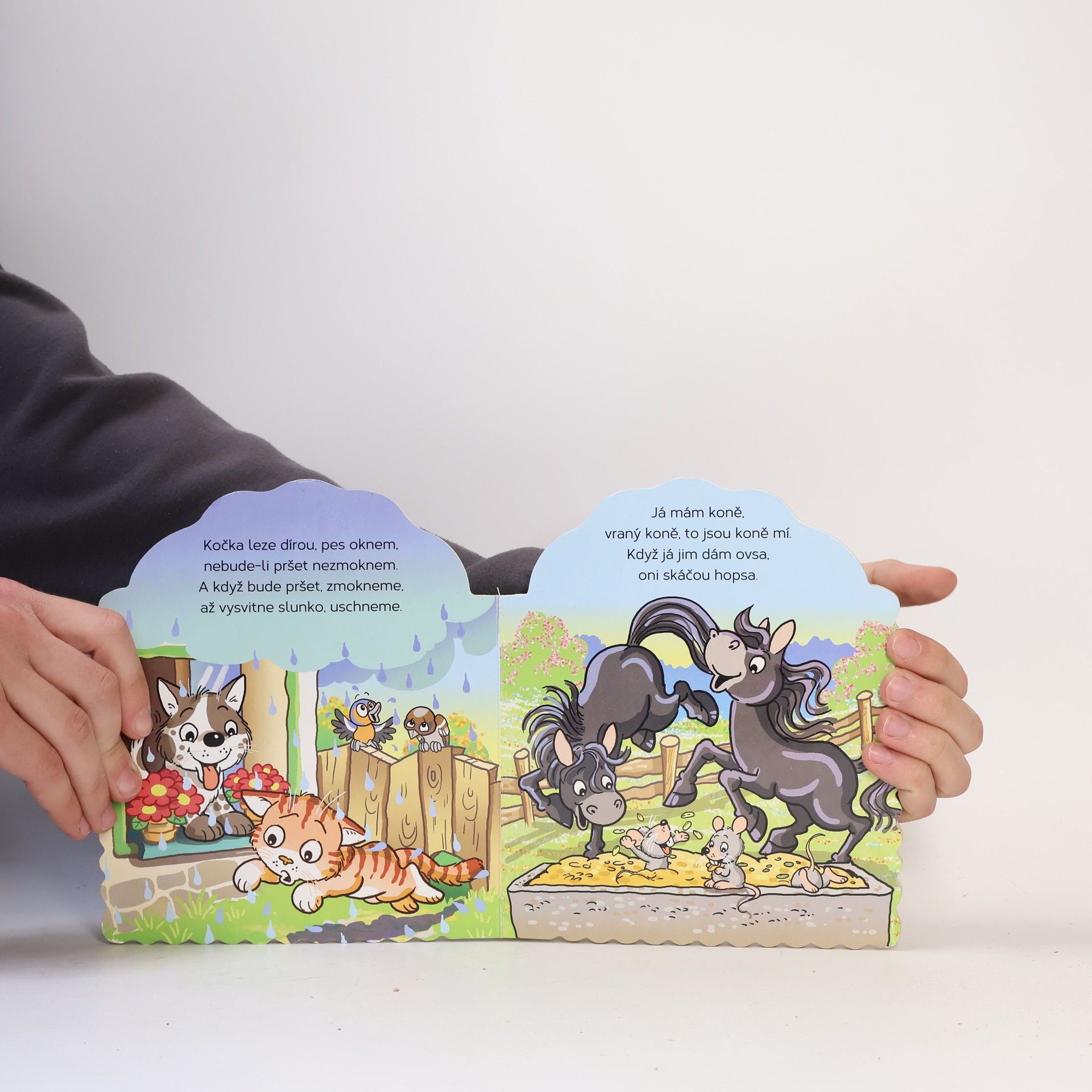 Ilustrované knížkové leporelo plné českých lidových říkadel. Tvarované kartonové listy.
