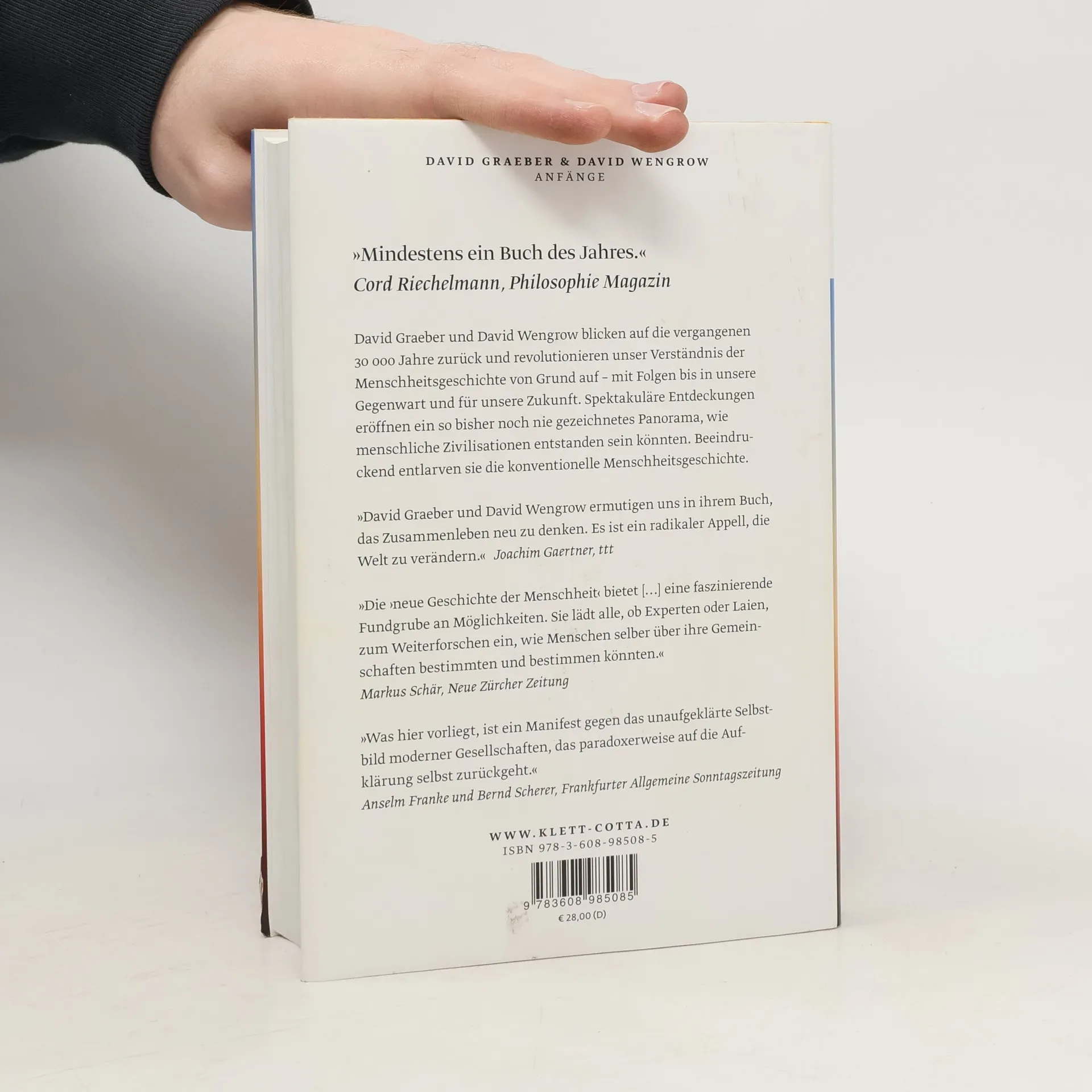 Faszinierend, provozierend, bahnbrechend – ein Buch, das in den kommenden Jahren für Diskussionen sorgen wird. David Graeber, der bedeutendste Anthropologe unserer Zeit, und David Wengrow, einer der führenden Archäologen, entfalten in ihrer umfassenden Menschheitsgeschichte, wie sich die Anfänge unserer Zivilisation mit der Zukunft der Menschheit neu verbinden lassen. Sie revidieren unser bisheriges Menschenbild und erzählen die Geschichte der Menschheit auf eine völlig neue Weise. Über Jahrtausende hinweg wurden vielfältige Formen sozialer Organisation erfunden, und das Streben nach Freiheit, Wissen und Glück war bereits vor der Aufklärung präsent. Graeber und Wengrow zeigen, wie stark indigene Perspektiven das westliche Denken beeinflusst haben und wie wichtig deren Rückgewinnung ist. Sie ermuntern uns, mutiger für eine andere Zukunft der Menschheit einzutreten und diese durch unser Handeln zu verändern. Graeber, ein bedeutender Kulturanthropologe und Vordenker der Occupy-Bewegung, inspirierte viele mit seinen Ideen zur sozialen Gerechtigkeit. Am 2. September 2020 starb er überraschend, kurz nachdem er und Wengrow ihr Werk abgeschlossen hatten. Dieses Meisterwerk ist Graebers Vermächtnis und regt dazu an, die menschlichen Fähigkeiten neu zu überdenken und die Geschichte in einem neuen Licht zu sehen. Es entlarvt Klischees über die Menschheitsgeschichte und eröffnet neue Möglichkeiten für die Zukunft.