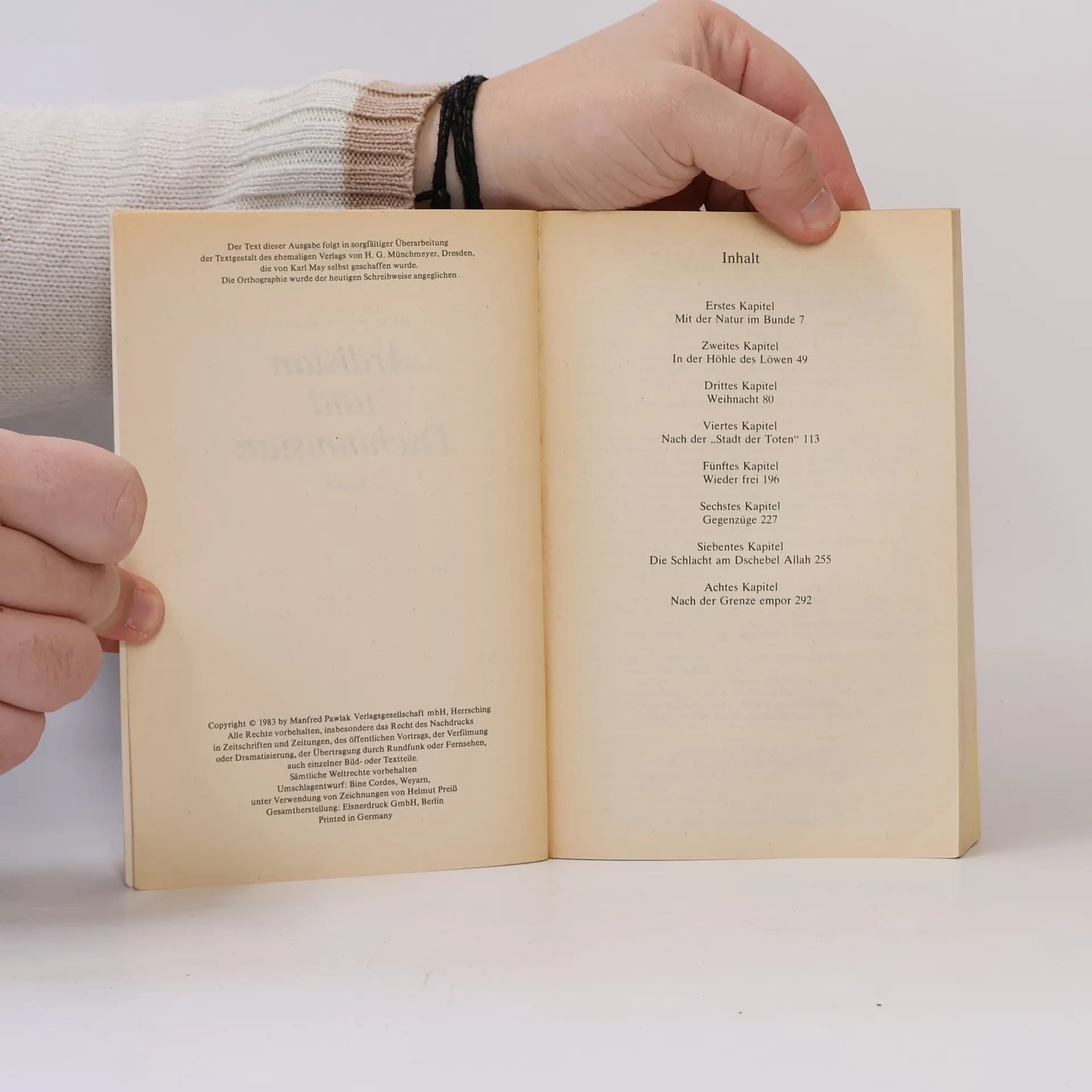 Kara Ben Nemsi, Karl Mays Alter Ego, begibt sich mit seinem treuen Begleiter Hadschi Halef Omar auf eine Reise in die geheimnisvolle Welt der verfeindeten Reiche Ardistan und Dschinnistan, wo er eine vielschichtige, gleichnishafte Handlung erlebt.