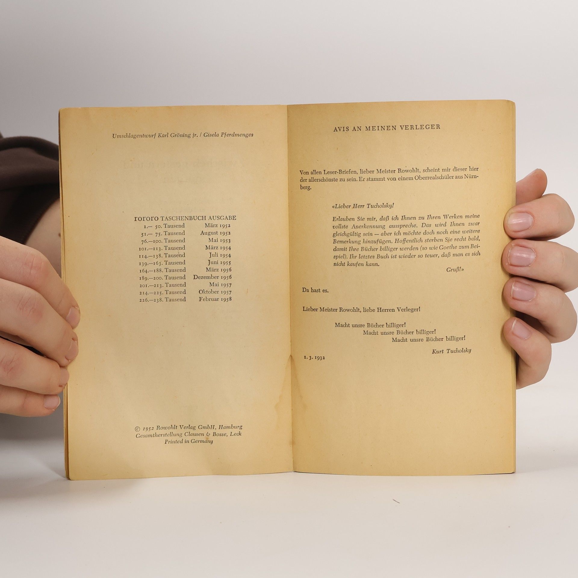 Zwischen gestern und morgen, Kurt Tucholsky