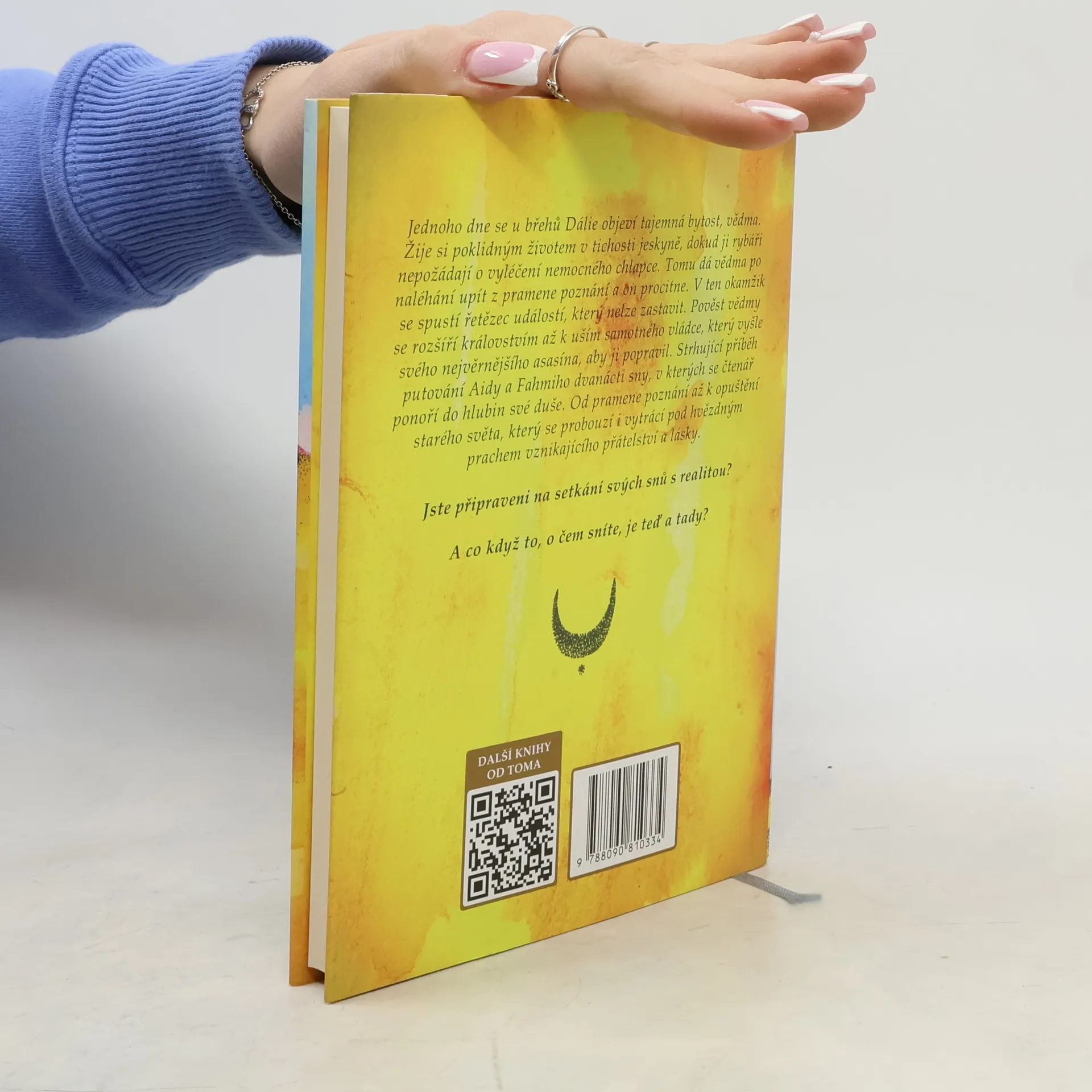 Jednoho dne se u břehů Dálie objeví tajemná bytost, vědma. Žije si poklidným životem v tichosti jeskyně, dokud ji rybáři nepožádají o vyléčení nemocného chlapce. Tomu dá vědma po naléhání upít z pramene poznání a on procitne. V ten okamžik se spustí řetězec událostí, který nelze zastavit. Pověst vědmy se rozšíří královstvím až k uším samotného vládce, který vyšle svého nejvěrnějšího asasína, aby ji popravil. Strhující příběh putování Aidy a Fahmiho dvanácti sny, v kterých se čtenář ponoří do hlubin své duše. Od pramene poznání až k opuštění starého světa, který se probouzí i vytrácí pod hvězdným prachem vznikajícího přátelství a lásky. Jste připraveni na setkání svých snů s realitou? A co když to, o čem sníte, je teď a tady?