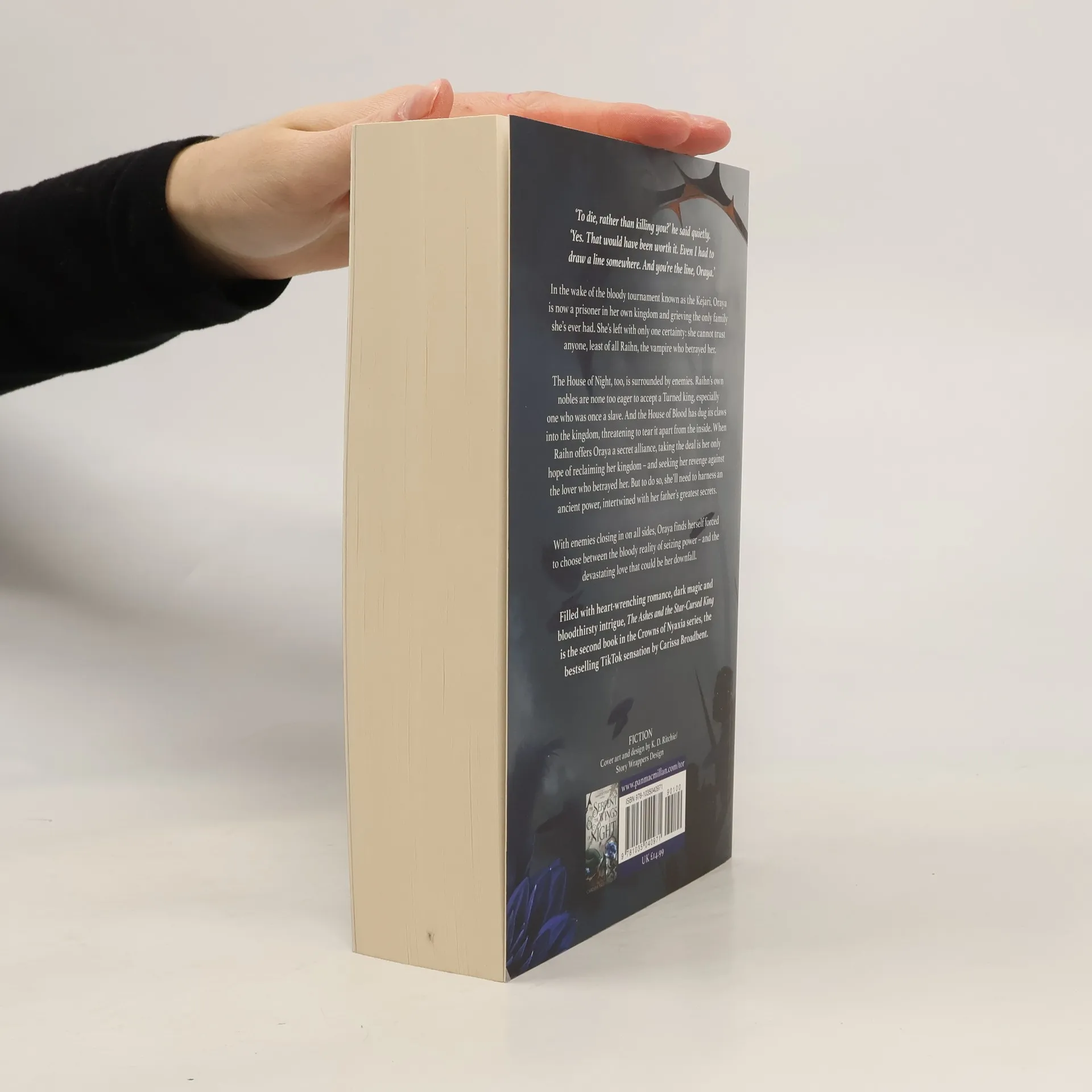 Love is a sacrifice at the altar of power.In the wake of the Kejari, everything Oraya once thought to be true has been destroyed. A prisoner in her own kingdom, grieving the only family she ever had, and reeling from a gutting betrayal, she no longer even knows the truth of her own blood. She’s left only with one certainty: she cannot trust anyone, least of all Raihn.The House of Night, too, is surrounded by enemies. Raihn’s own nobles are none too eager to accept a Turned king, especially one who was once a slave. And the House of Blood digs their claws into the kingdom, threatening to tear it apart from the inside.When Raihn offers Oraya a secret alliance, taking the deal is her only chance at reclaiming her kingdom–and gaining her vengeance against the lover who betrayed her. But to do so, she’ll need to harness a devastating ancient power, intertwined with her father’s greatest secrets.But with enemies closing in on all sides, nothing is as it seems. As she unravels her past and faces her future, Oraya finds herself forced to choose between the bloody reality of seizing power – and the devastating love that could be her downfall.
