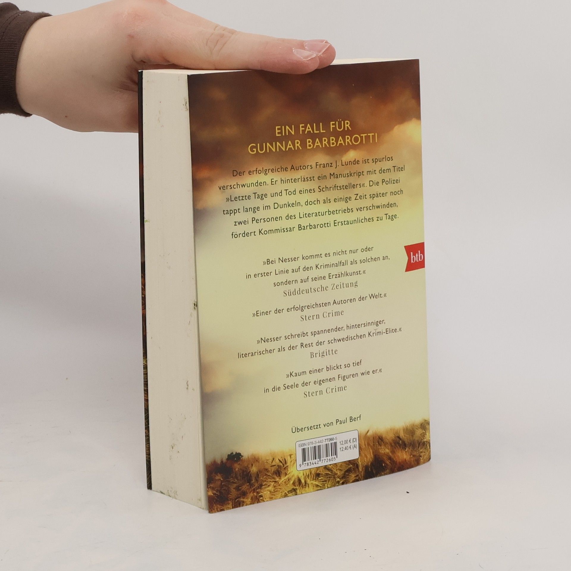 Die Leser des erfolgreichen Autors Franz J. Lunde sind sich sicher: Wer einen Mord so schildert, muss ihn selbst begangen haben. Lunde, der an einem Manuskript mit dem Titel »Letzte Tage und Tod eines Schriftstellers« arbeitet, fühlt sich von seinem Publikum bedroht. Nach einer Lesung in Kymlinge ist er plötzlich spurlos verschwunden. Kurze Zeit später wird die bekannte Lyrikerin Maria Green vermisst. Auch sie hinterlässt ein rätselhaftes Schriftfragment. Die Polizei tappt im Dunklen, bis ein halbes Jahr später der Autor und Literaturkritiker Jack Walde unauffindbar ist. Was verband diese drei Schriftsteller? Was ist ihnen zugestoßen? Kommissar Barbarotti fördert trotz erschwerter Bedingungen Erstaunliches zu Tage.