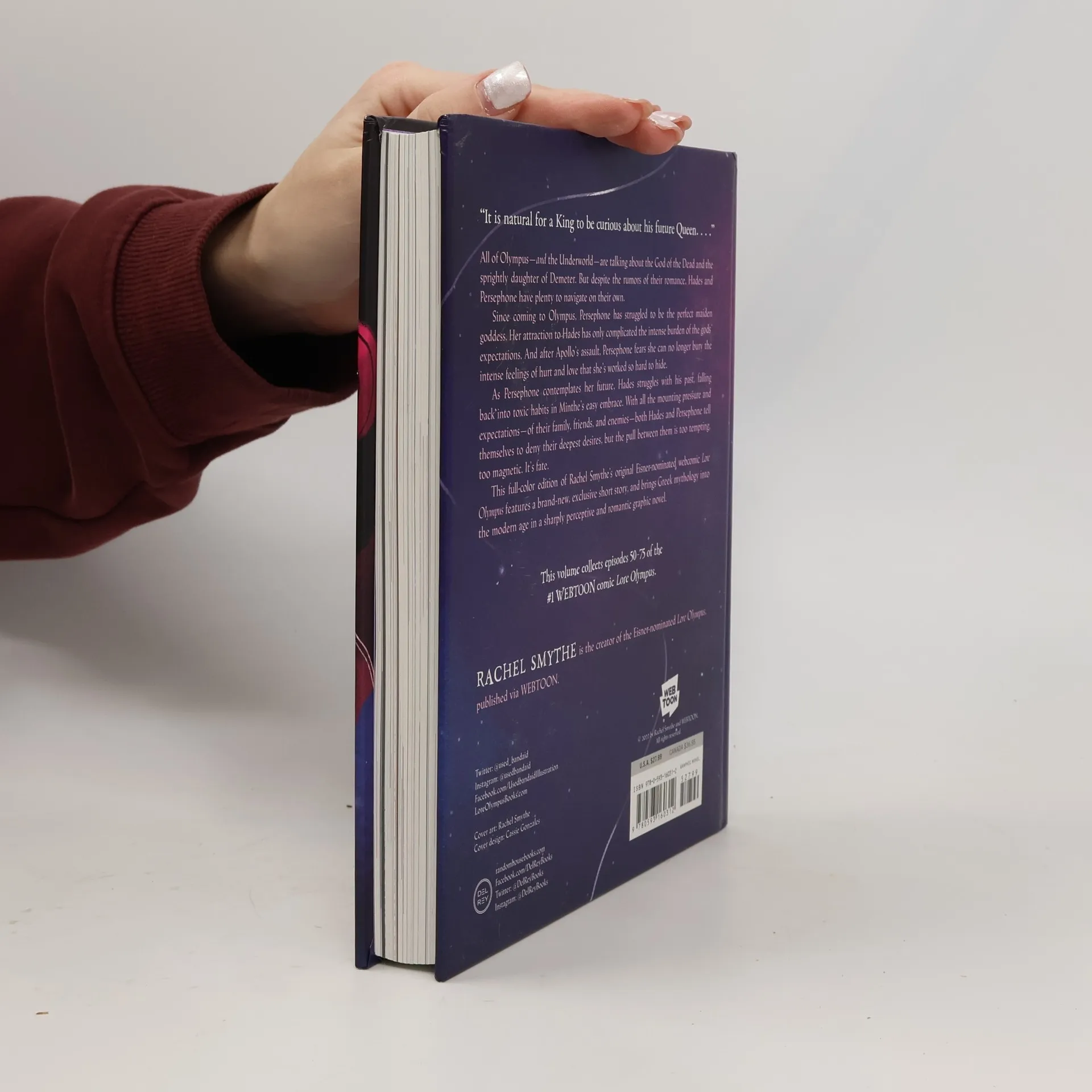 Witness what the gods do after dark in the third volume of a stylish and contemporary reimagining of one of the best-known stories in Greek mythology, featuring a brand-new, exclusive short story from creator Rachel Smythe."It is natural for a King to be curious about his future Queen. . . ."All of Olympus--and the Underworld--are talking about the God of the Dead and the sprightly daughter of Demeter. But despite the rumors of their romance, Hades and Persephone have plenty to navigate on their own.Since coming to Olympus, Persephone has struggled to be the perfect maiden goddess. Her attraction to Hades has only complicated the intense burden of the gods' expectations. And after Apollo's assault, Persephone fears she can no longer bury the intense feelings of hurt and love that she's worked so hard to hide.As Persephone contemplates her future, Hades struggles with his past, falling back into toxic habits in Minthe's easy embrace. With all the mounting pressure and expectations--of their family, friends, and enemies--both Hades and Persephone tell themselves to deny their deepest desires, but the pull between them is too tempting, too magnetic. It's fate.This full-color edition of Smythe's original Eisner-nominated webcomic Lore Olympus brings Greek mythology into the modern age in a sharply perceptive and romantic graphic novel. This volume collects episodes 50-75 of the #1 WEBTOON comic Lore Olympus.